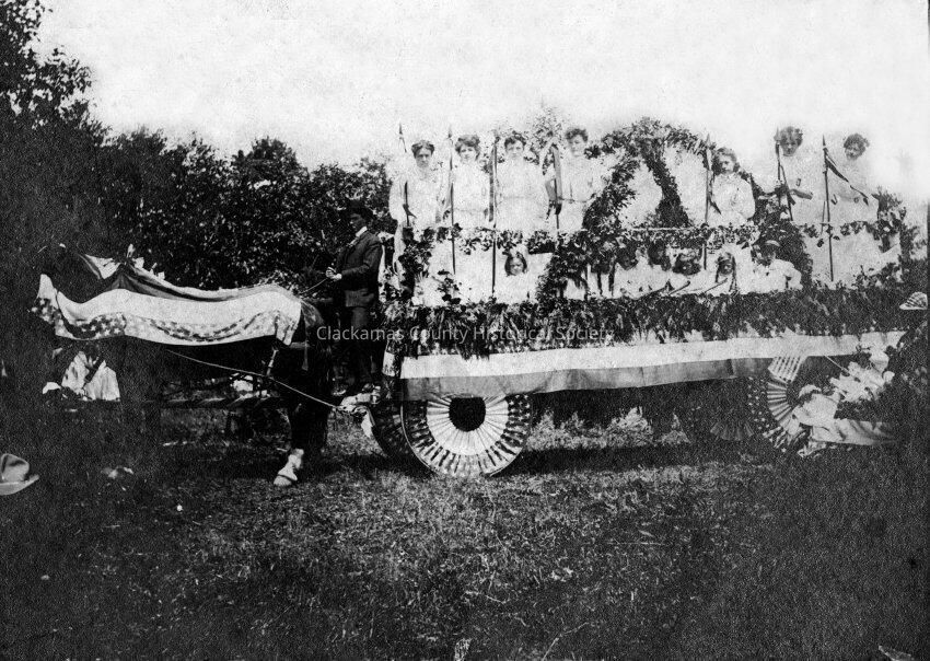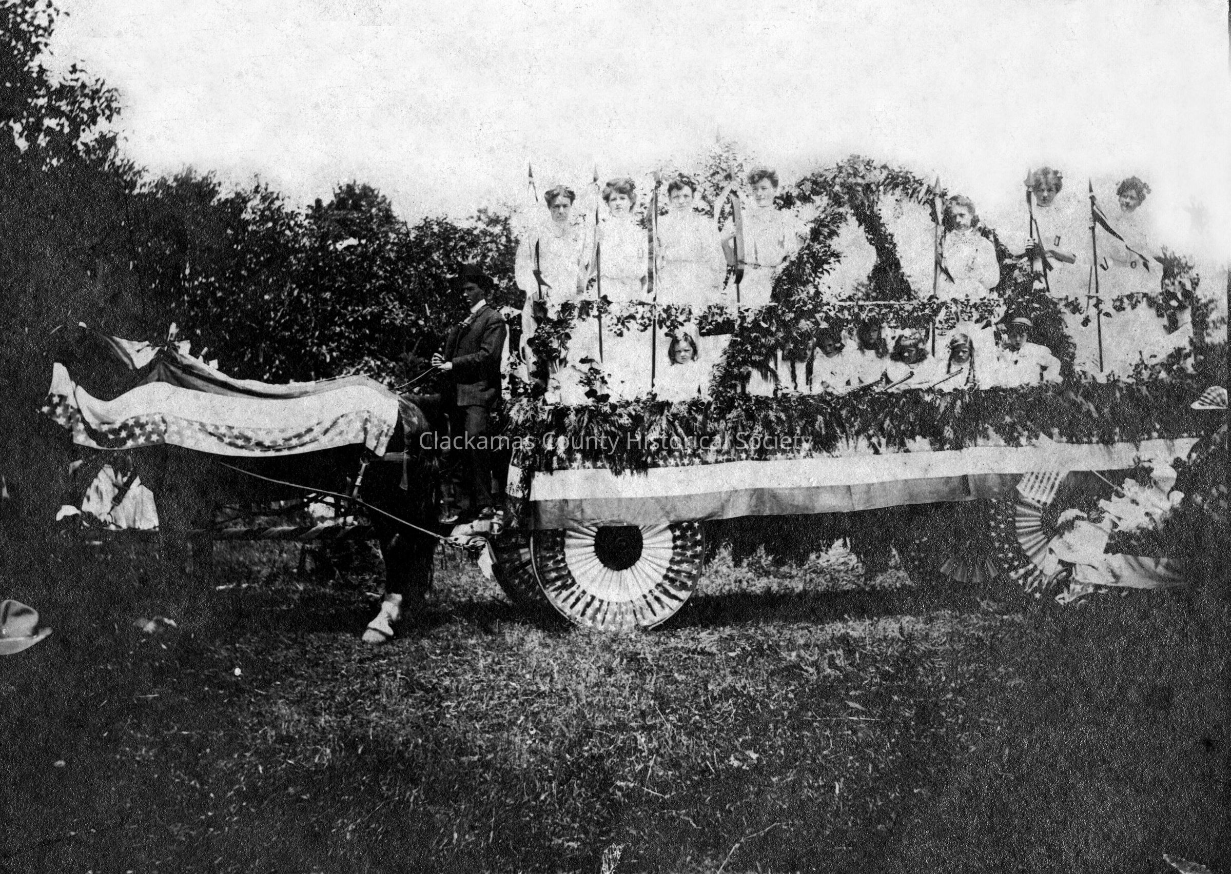 Milwaukie, Oregon - Fourth of July, 1907 - Horse and Wagon with Riders and FlagsEntry/Object ID