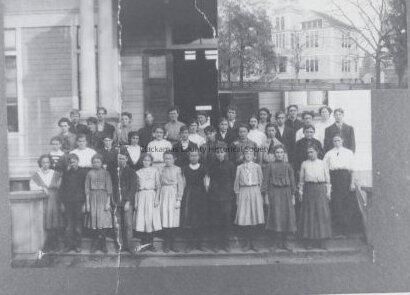 Dora Brotje, Ellen Jackson, May Lakin, Otto Shindler Edith Roberts, Reginald Witte, Olivia Johnson, Edward Winzeried, Carol Howard, Owen Walsh, Ada Lakin, Alfred John, Mytlre Baker, Vada Bristow, Hattie Keck, Fred Harris, Mrs. Shaw Teacher, Emma Roberts, Adam Keck, Eugenie Johnson, Burton, Ruth Zanders, Valard Bristow, Olga Drefs, Roy Shroeder, Algar Cooper, Mamie Bonfigt, Fay Scroeder, Mary Devine, Frank Fisher, Bessie Holt, Water Koenig, Grace Knickerbock, Katherine Sauber, Fred Streib, Martha Mullen, Ellen Roberts, Clayton Coleman