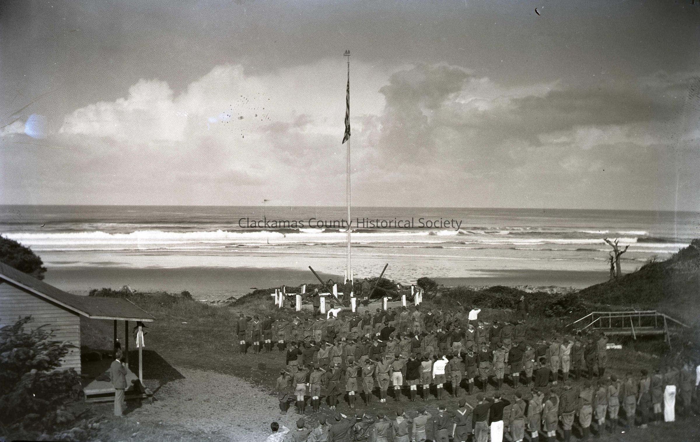 The Morning colors assembly at Boy Scout Camp Merriwether, Oegon - Negative