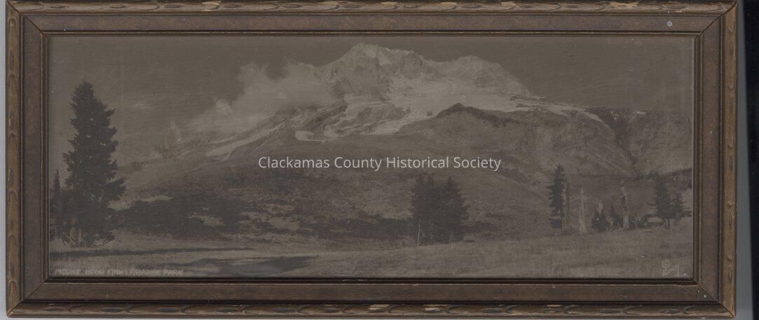 Framed sephia tone photograph of Mt. Hood from Paradise Park