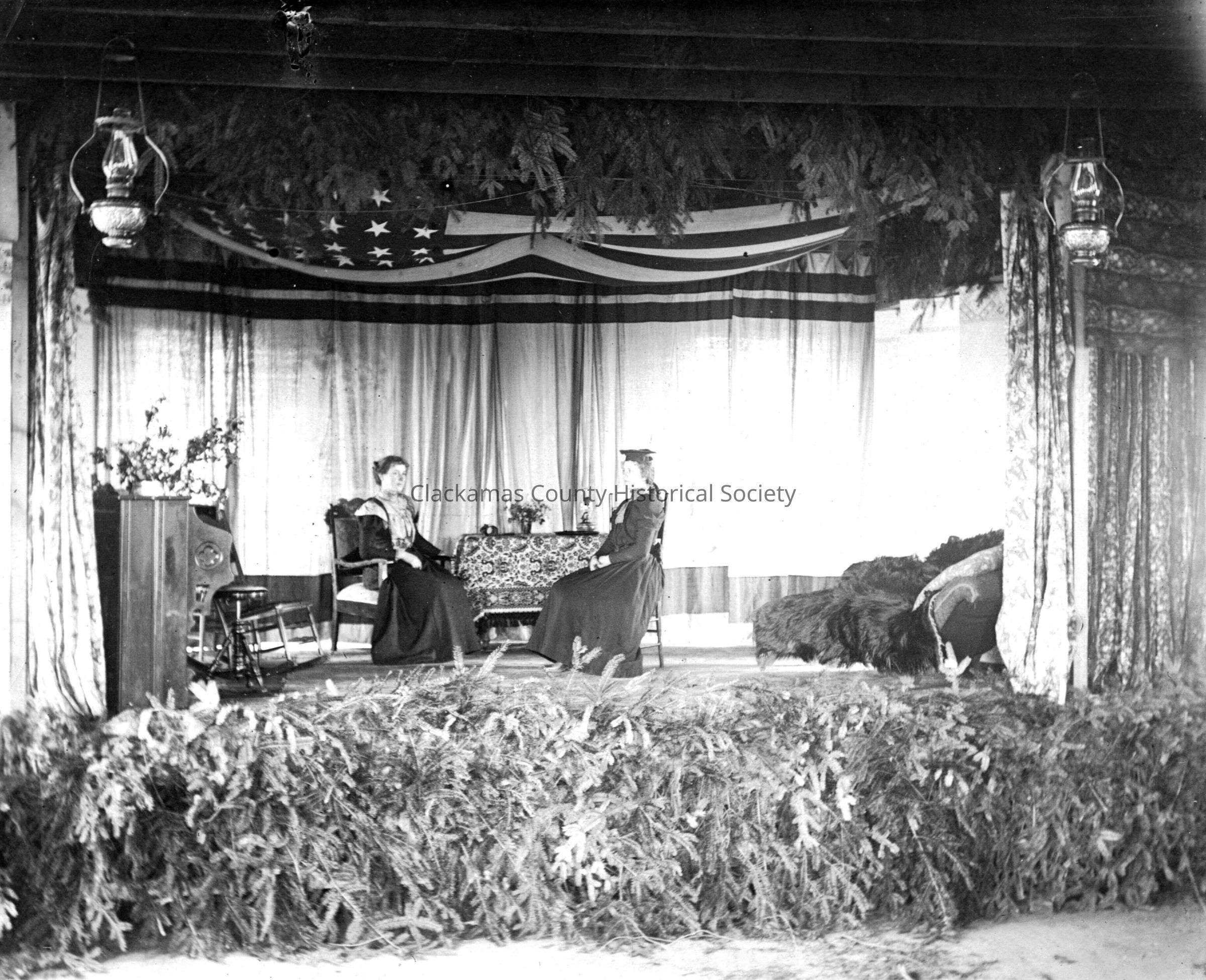 Mt. Pleasant School Play. L-R on stage: 1) Lorenz Lazelle; and 2) Helen Riggs.Made/Created