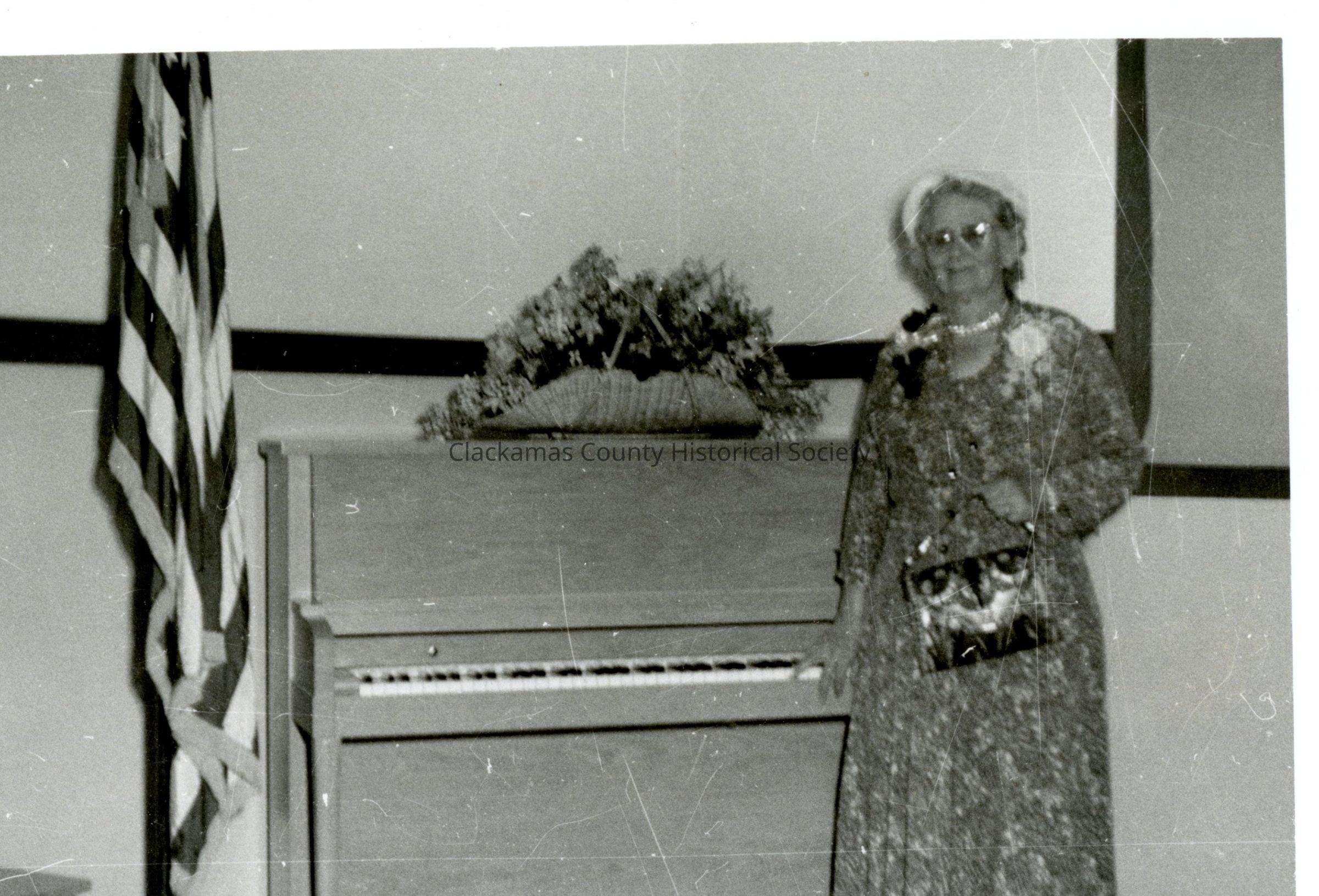 "Murial Watkins Gerbig - At Mt. Pleasant School July 18, 1976. Flower arrangement from Bertha's garden (Betha Hartke Buchholz)"