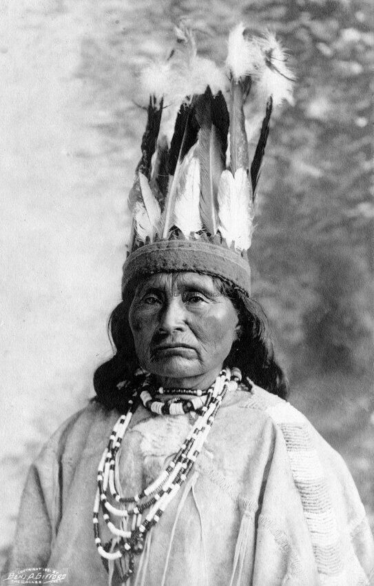 Native American in Headdress. Early 1900's. Benjamin Gifford Photo - The Dalles, Oregon