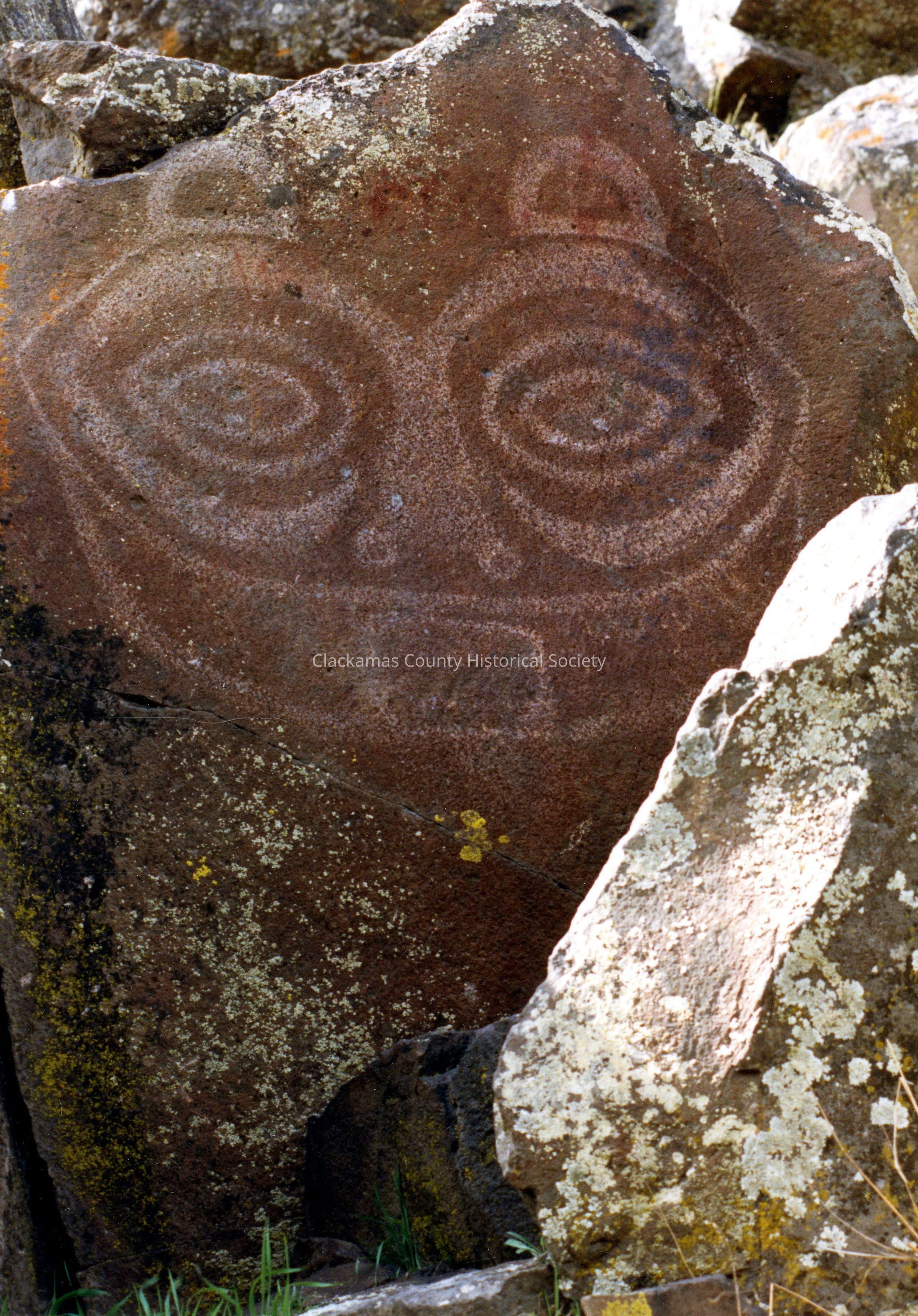 Native American petroglyphs and pictographs along the Columbia River in Lyle Washington. This one is called "She Who Watches" "Tsagaglalal" and is a Petroglyph - https://preservewa.org/most_endangered/tsagaglalal-she-who-watches-petroglyph/