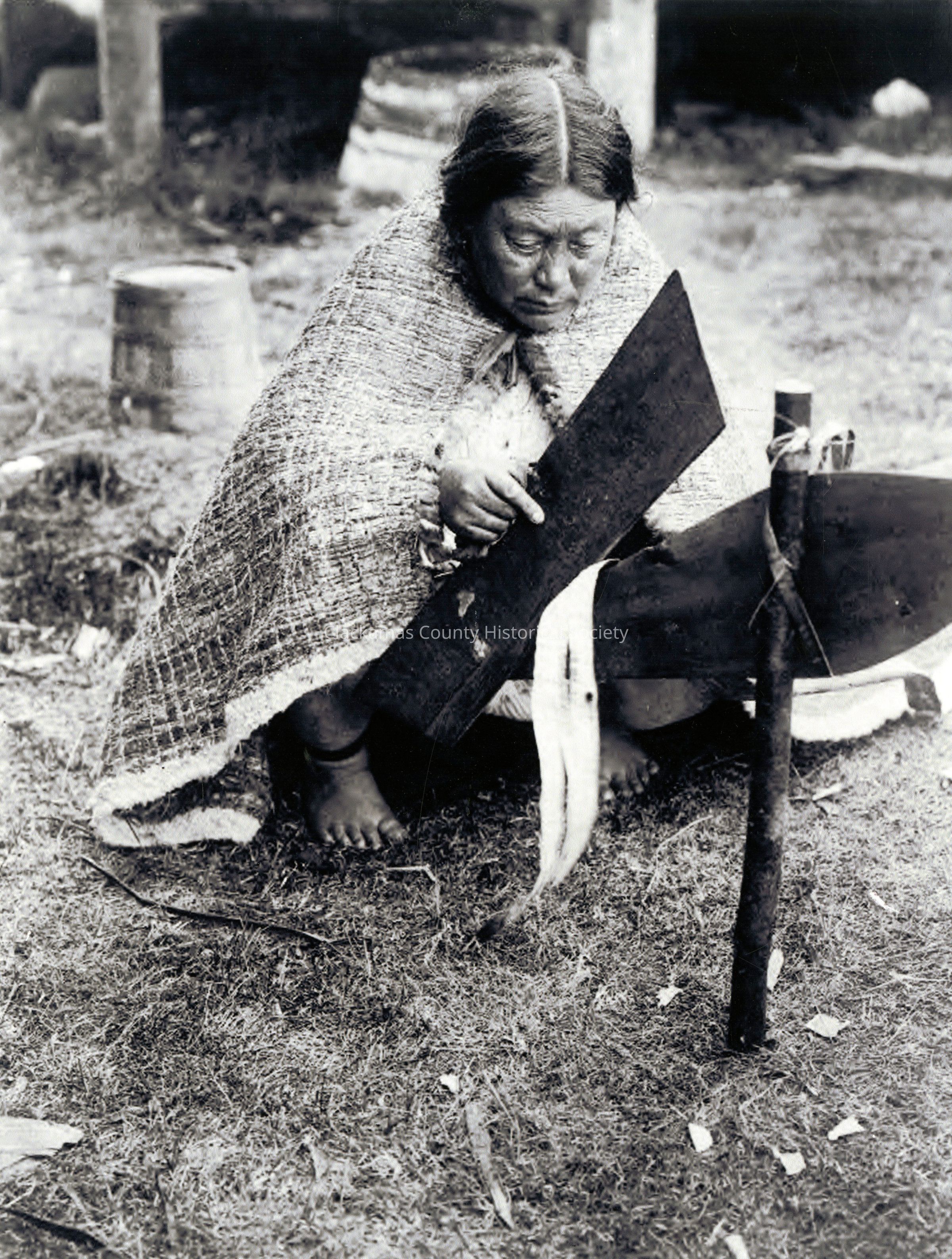 Native American Woman Preparing Cedar Bark c.1914 - Possibly British Columbia, CanadaEntry/Object ID