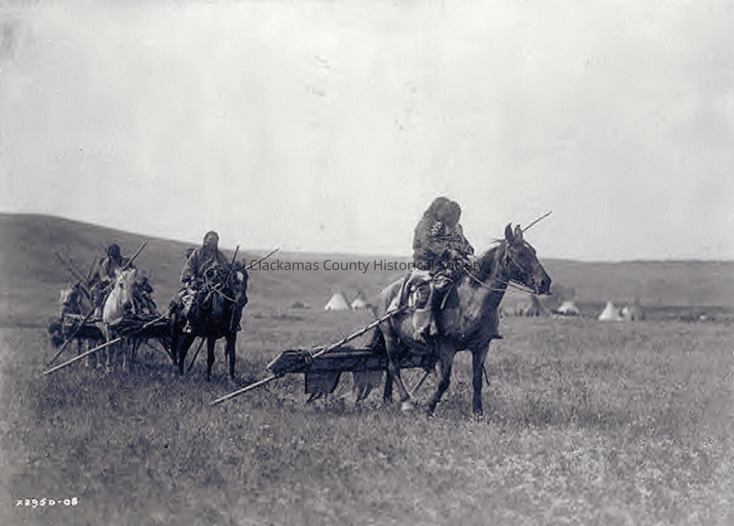 Native Americans Moving Camp with Travois and Horses in Montana c.1908Entry/Object ID