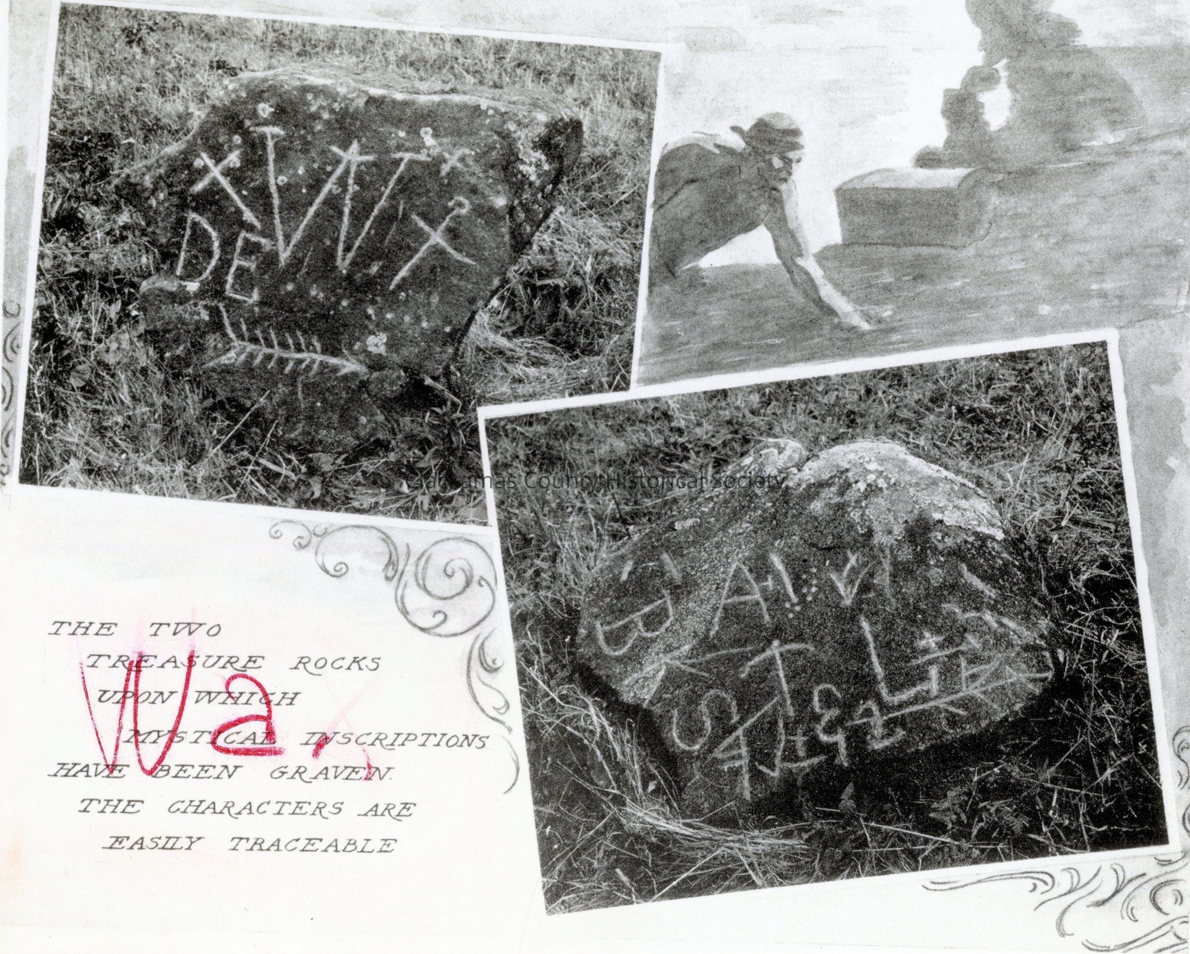 "It is believed from "Francis Drake’s circumnavigation in 1579 while becoming the first European to Captain to pilot a ship around the globe, he performed a survey on Neahkahnie Mountain as Symbolic Sovereign Act of a land claim by building cairns crowned with incised rock markers which have become known as the Treasure Rocks of Neahkahnie Mountain." From http://www.fortnehalem.net/the-treasure-rocks-of-neah-kah-nie-mt.html (dlking 10/12/2023)