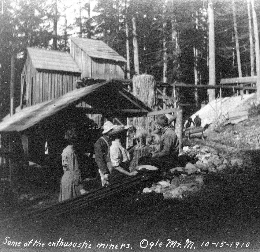 Photograph Postcard with four (4) unidentified people at Ogle Mountain MineMade/Created