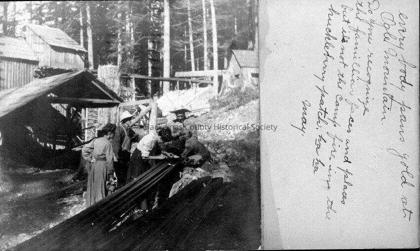 Photograph Postcard of people panning for gold at Ogle Mountain Mine.Made/Created