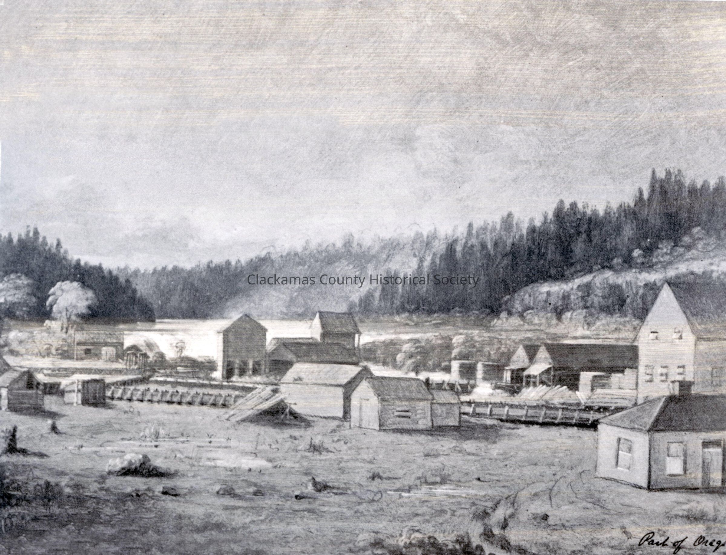 Oregon City 1845-1855 - Early Mills LithographEntry/Object ID