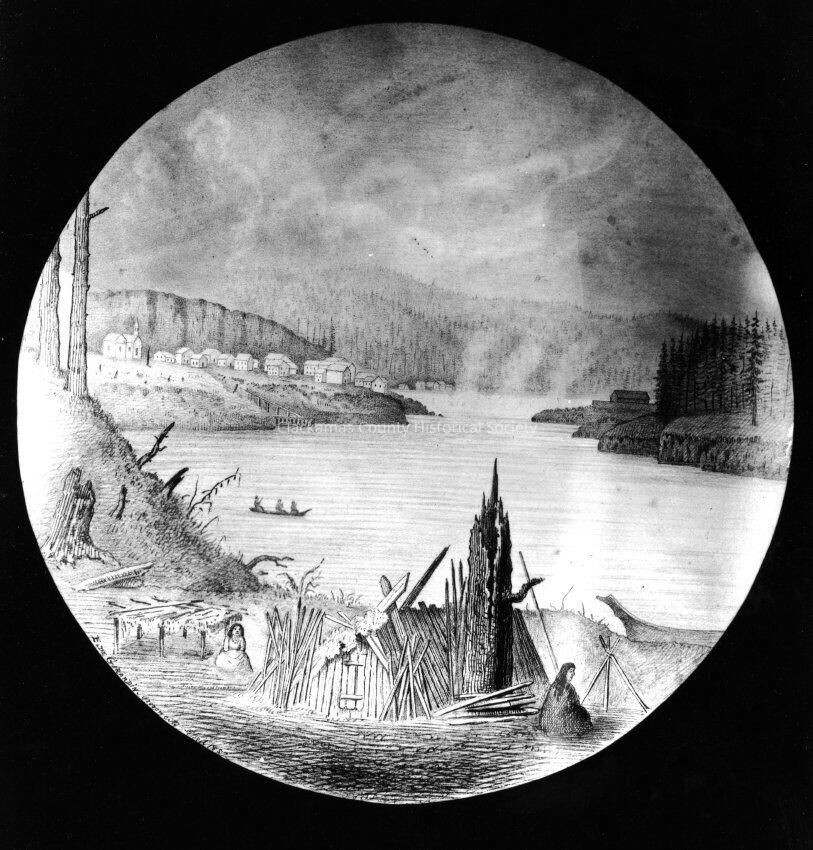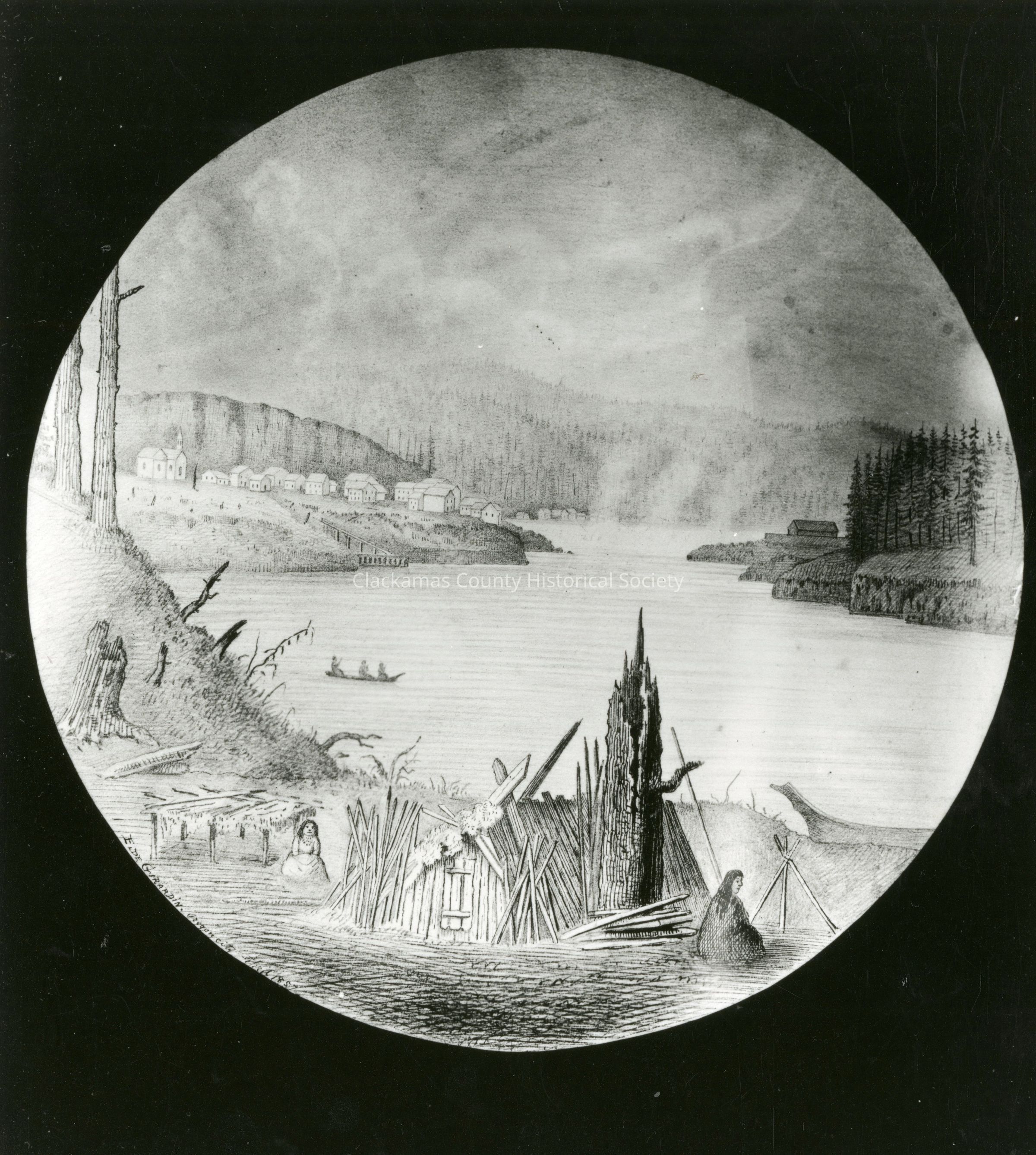 Oregon City 1857 - from Green Point - Drawing by E. DeGirardinEntry/Object ID