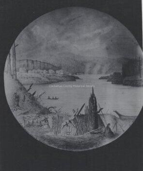 Oregon City from Green Point Drawing by E De Girardin 1857 Caufield # 6 **Duplicate of P-1946, P-5502 P-5596 P-5605, P-8596**