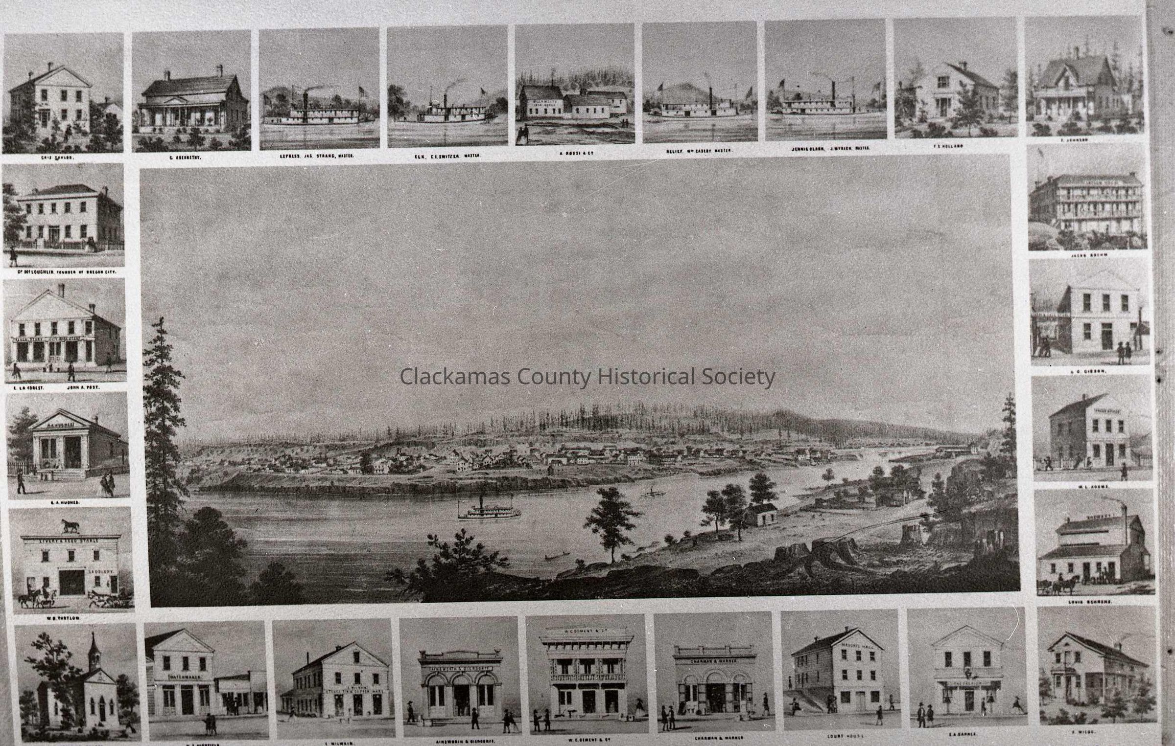Oregon City 1858 - Charman & Warner Lithograph of O.C., 1858 - Reprint CopyEntry/Object ID
