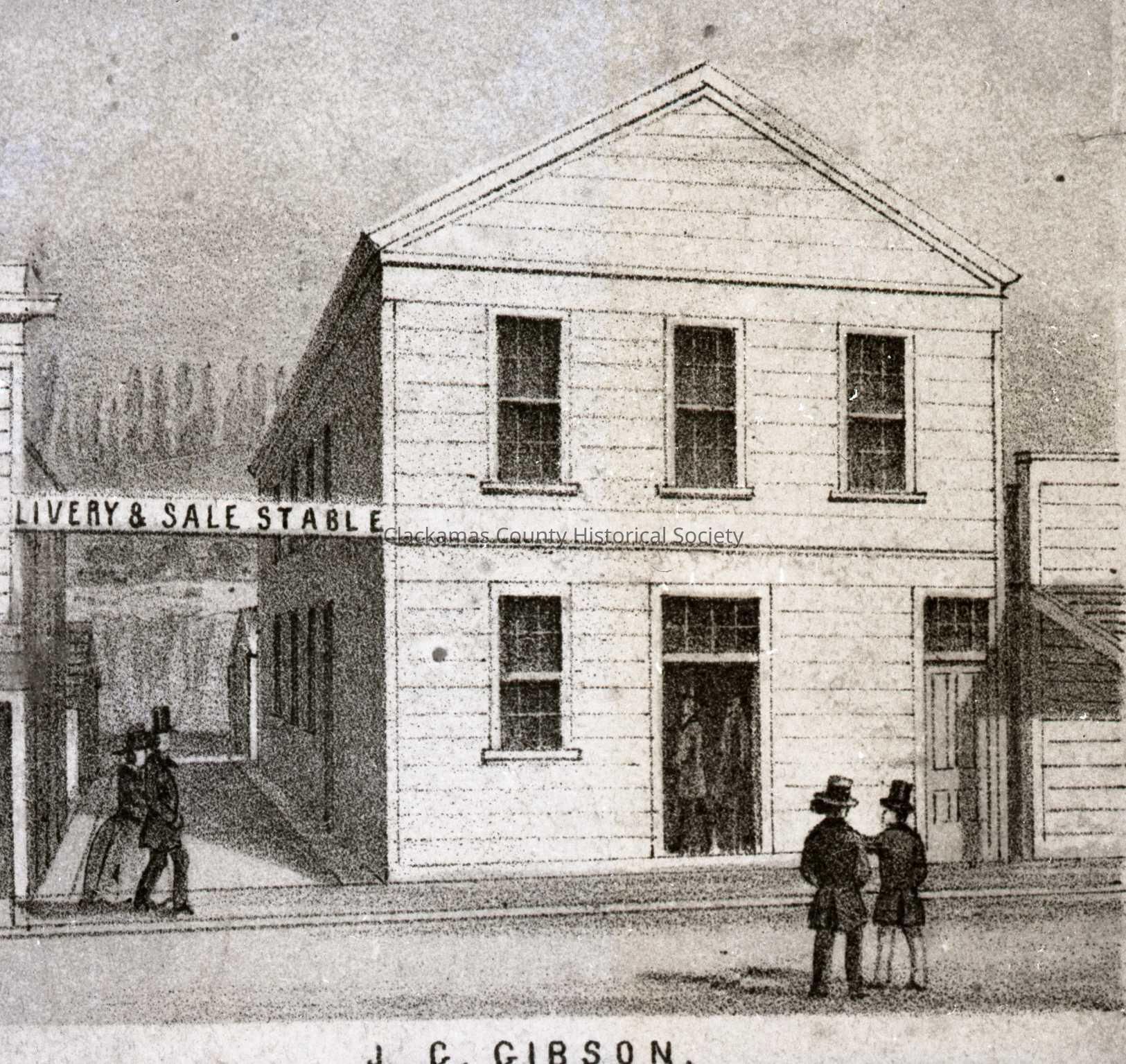 Oregon City 1858 - J.C. Gibson - Livery Stable at Back of Shades SaloonEntry/Object ID