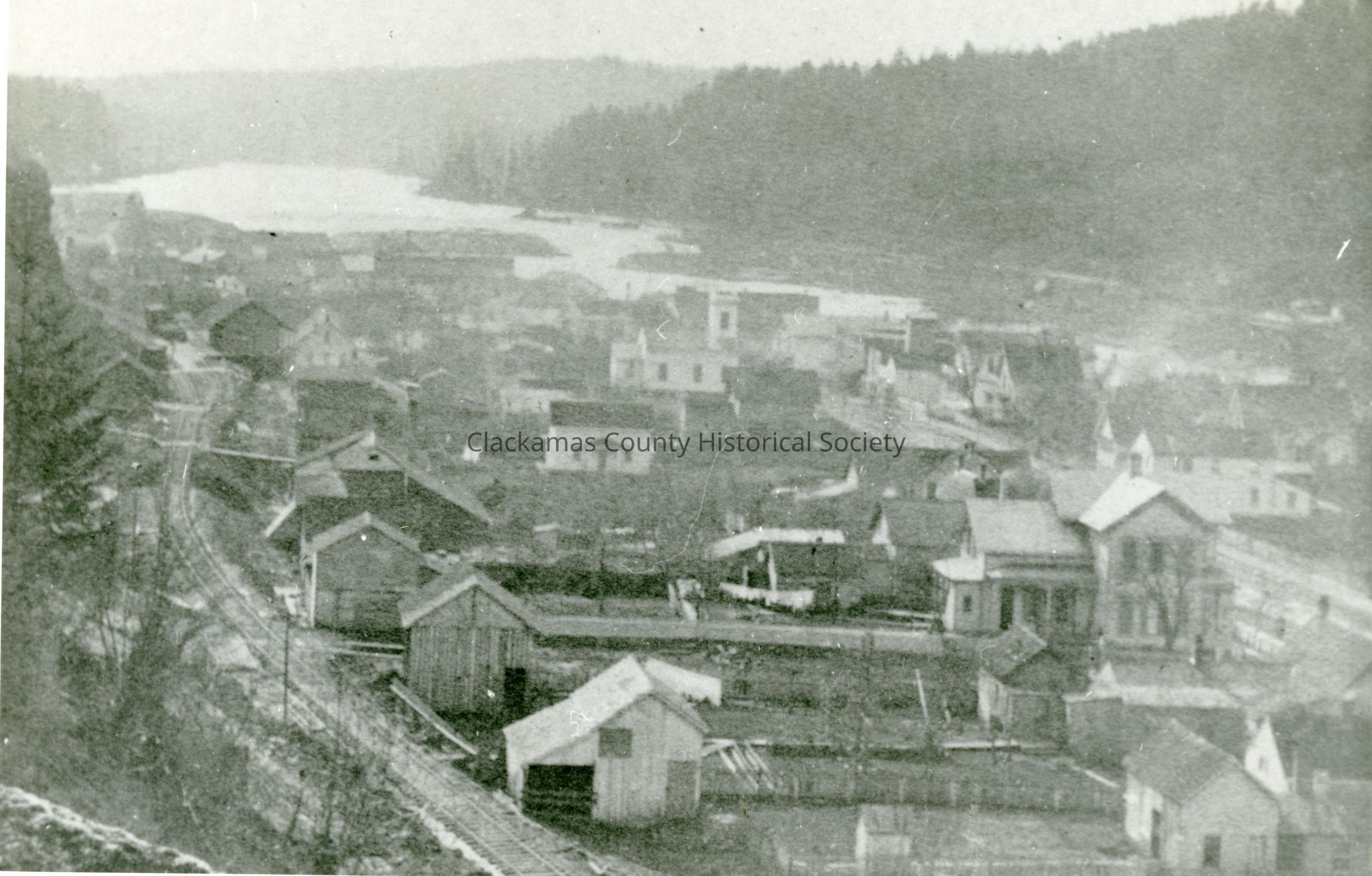 Oregon City from the Bluff, looking toward the Willamette Falls.Made/Created