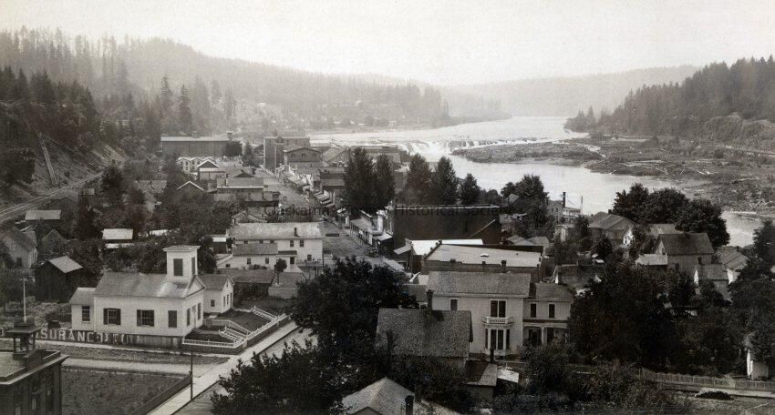Oregon City from Courthouse Tower. Shows 7th and Main Streets looking south toward the Falls.Made/Created