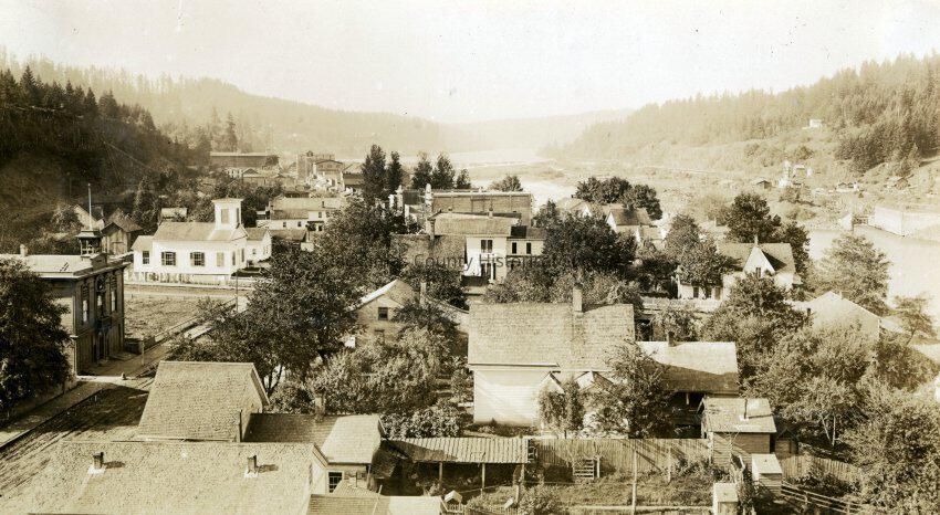 Oregon City from the Court House Tower. Other similar photos show date of 1886 or 1887