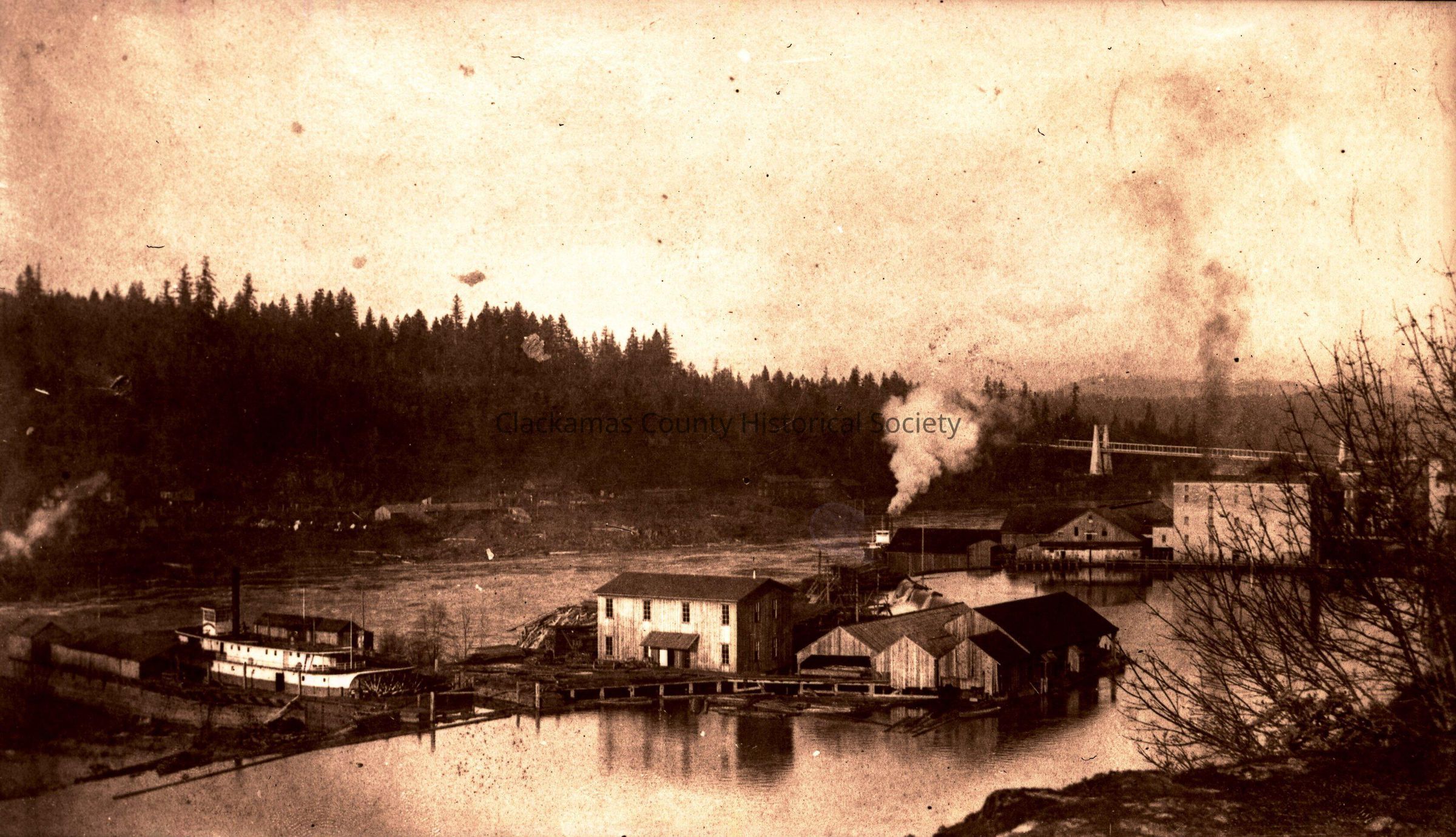 Oregon City - 1889 - Dry Dock, "Station A" and Saw Mill from the BluffEntry/Object ID
