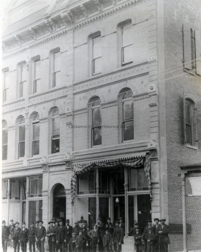 Electric Hotel. Charman Building, 411 Main Street, Oregon City, Oregon. 1892. Unidentified people posing.Made/Created