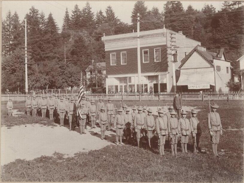 Oregon City 1905 - St. John's Catholic Boys Marching Team In School Yard