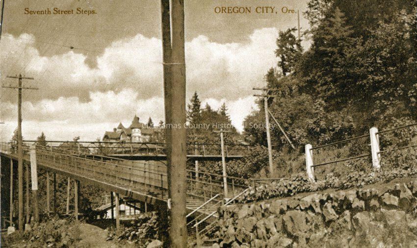 Oregon City 1909 - Seventh Street Steps with Eastham Mansion in Background.Entry/Object ID