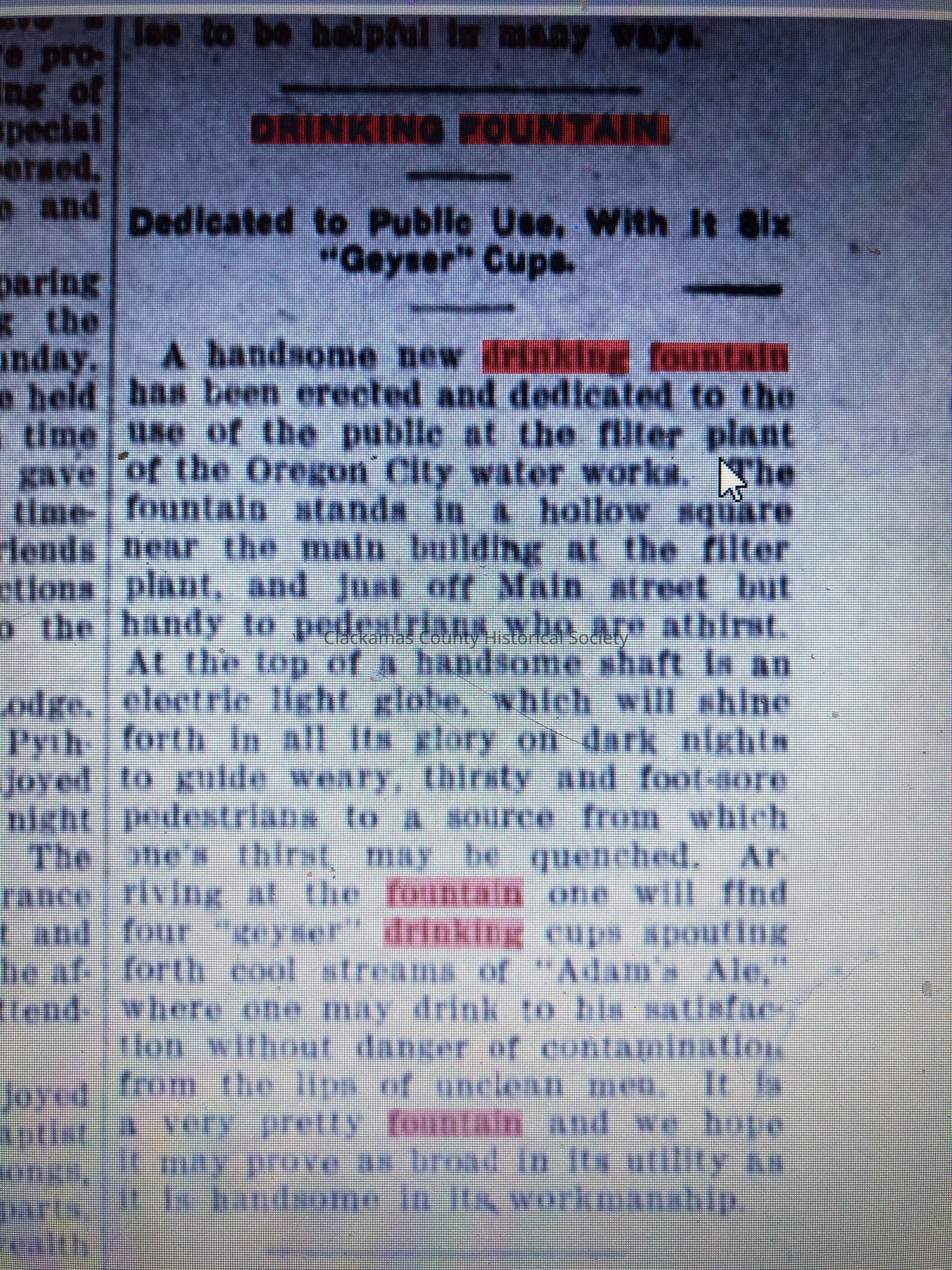 Oregon City 1910 - City Water WorksEntry/Object ID