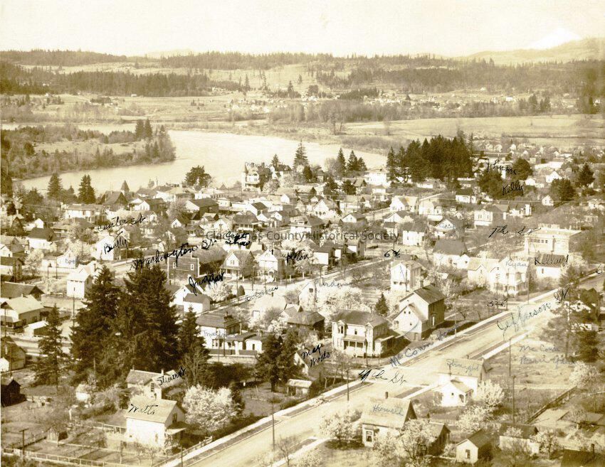Oregon City 1913-1920 - From Falls View - Some Homes labeled with Family NamesEntry/Object ID