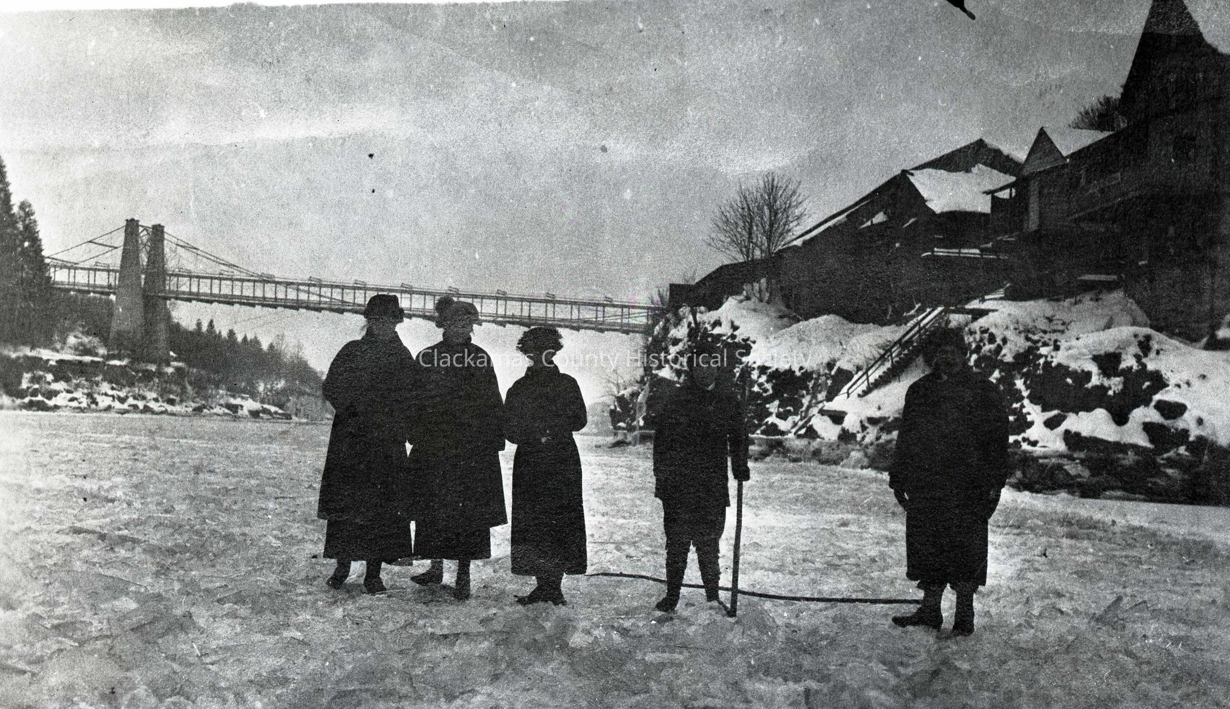 Oregon City 1919 - Willamette River Frozen - Unknown group walking on iceEntry/Object ID