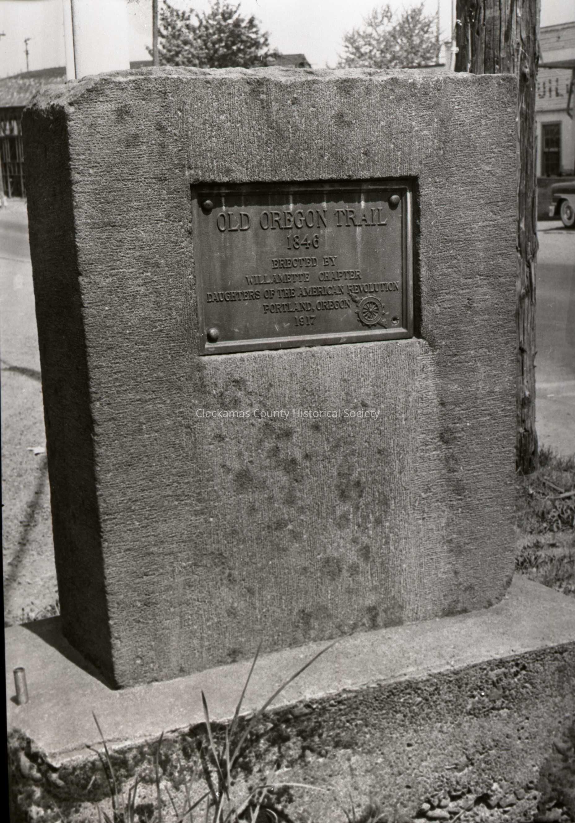 Oregon City 1950 - Old Oregon Trail Plaque - 17th & Washington St.Entry/Object ID