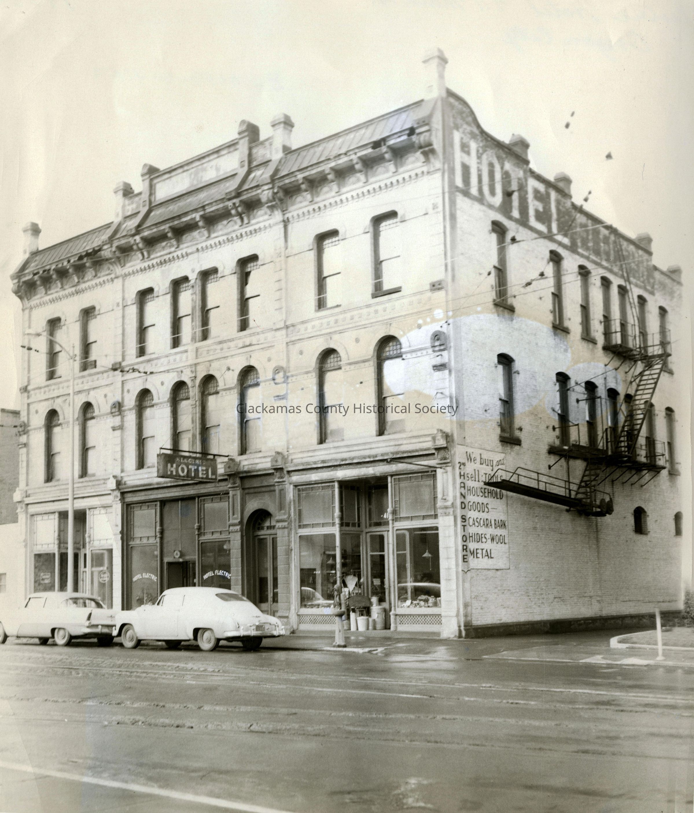 Electric Hotel in Charman Building, 411 Main Street (river side of Main Street), Oregon City.
