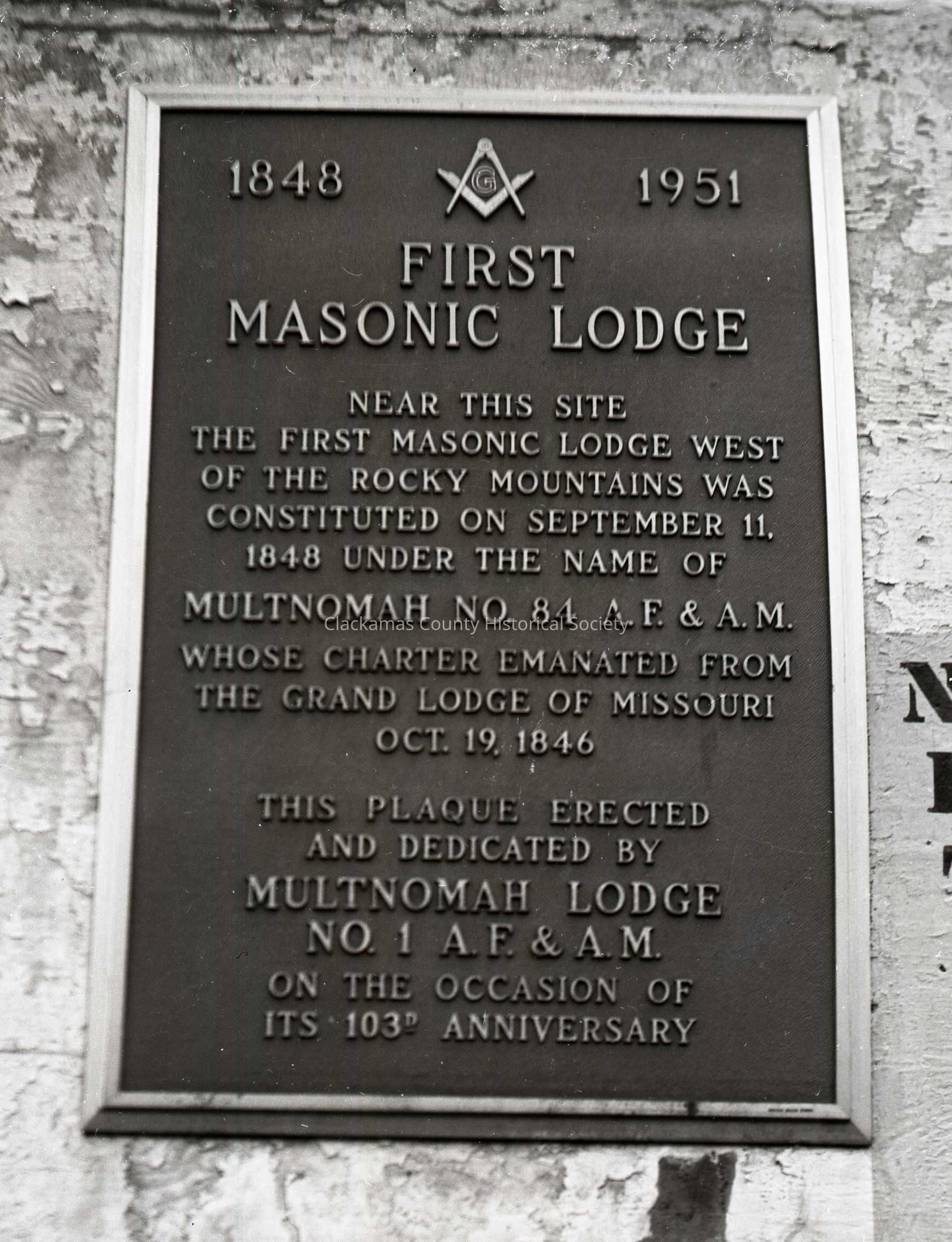 Oregon City 1961 - First Masonic Lodge MarkerEntry/Object ID