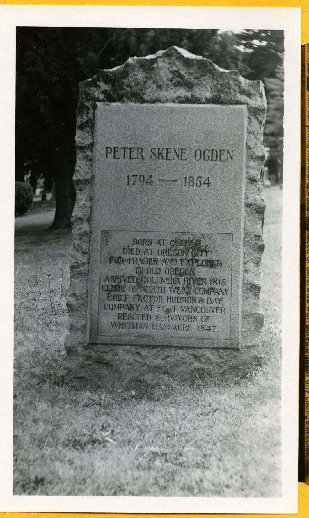 Oregon City-Mt. View Cemetery Peter Skene Ogden grave marker 1961 Butler # 103 **Duplicate of P-6485 and 2008.008.048.103**