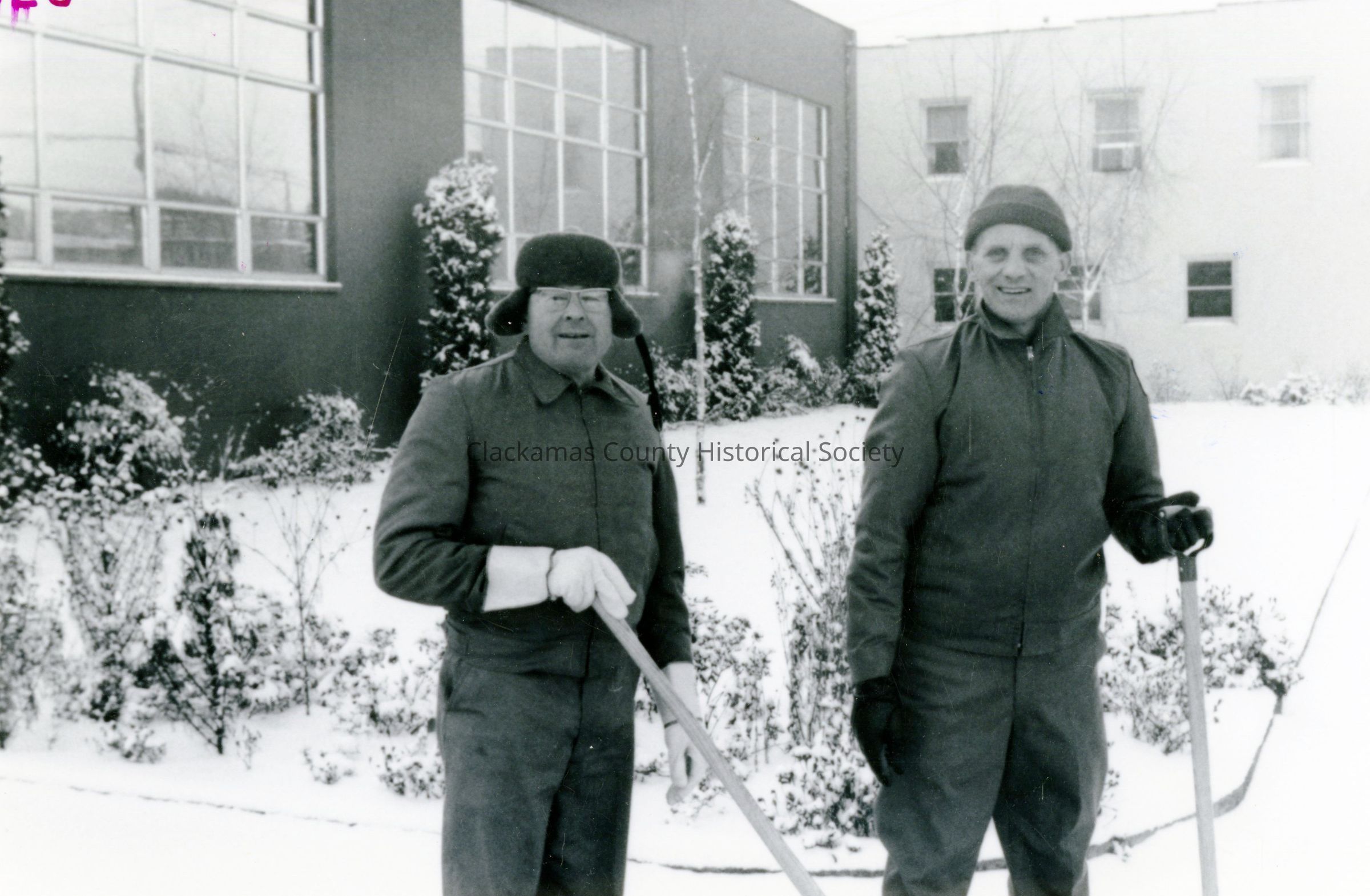 Oregon City Post Office (606 15th Avenue) Snow Removal December 1972 two men U-1426.005131 A