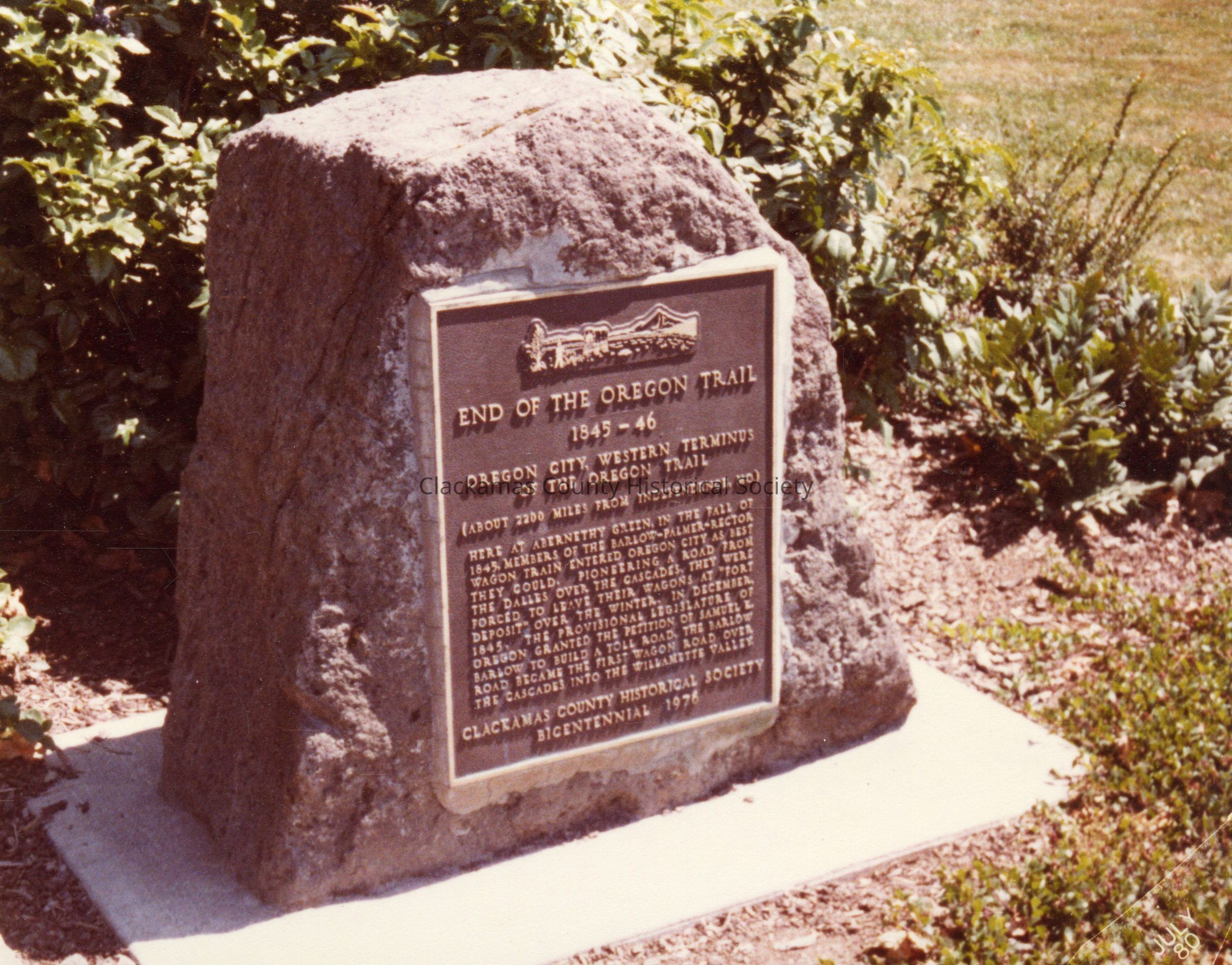 End of the Oregon Trail Marker, 1845-46. Abernethy Green