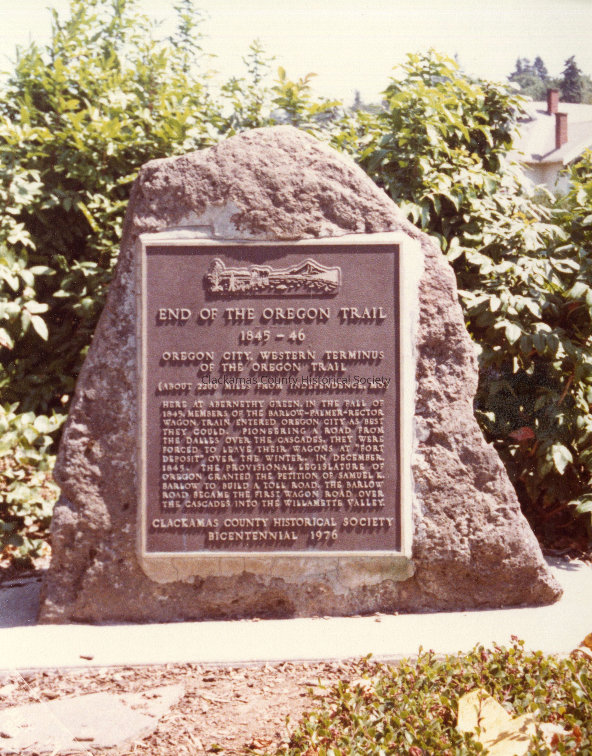 End of the Oregon Trail Marker, 1845-46. Abernethy Green
