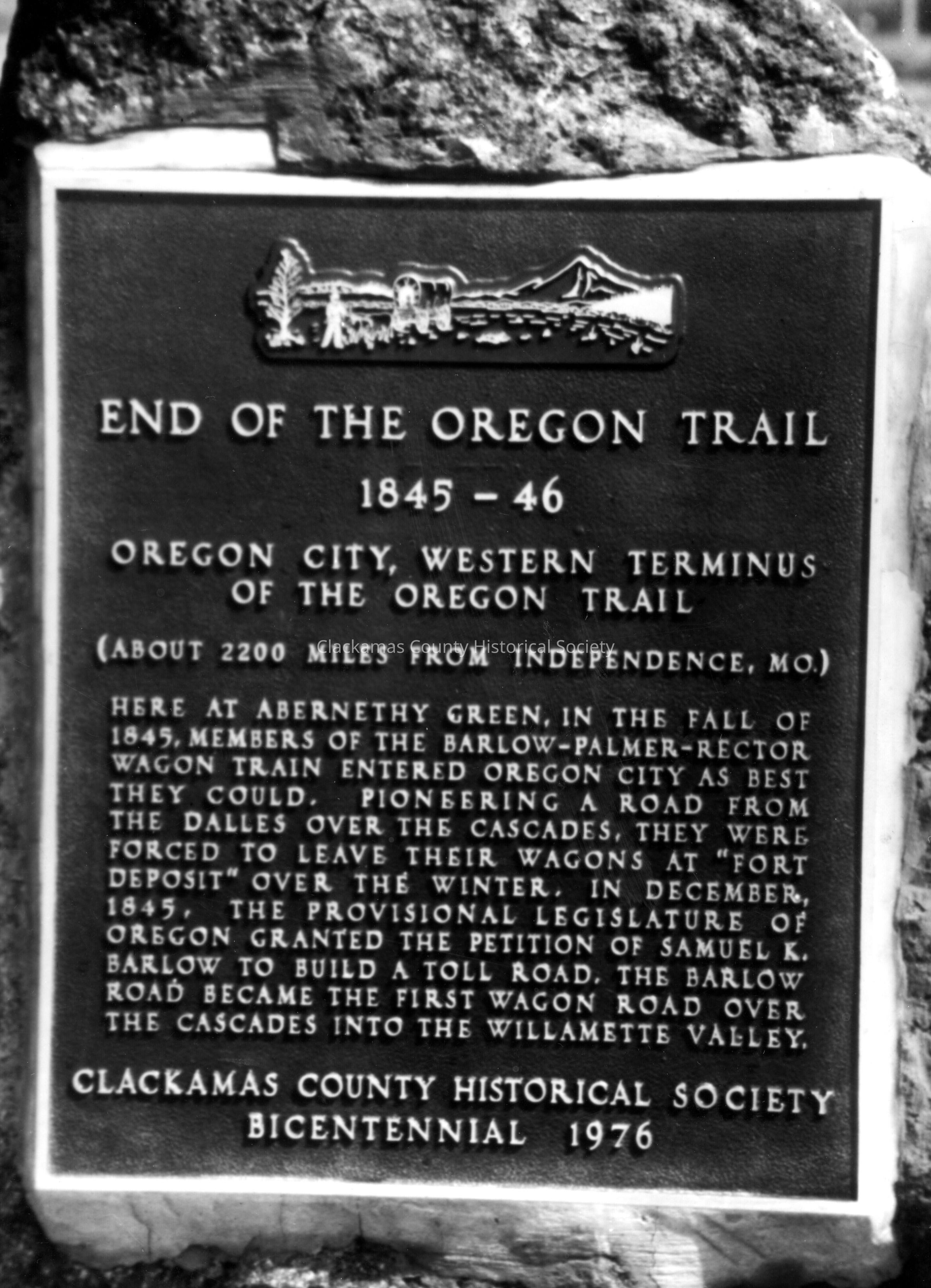 End of the Oregon Trail Marker, 1845-46. Abernethy GreenMade/Created