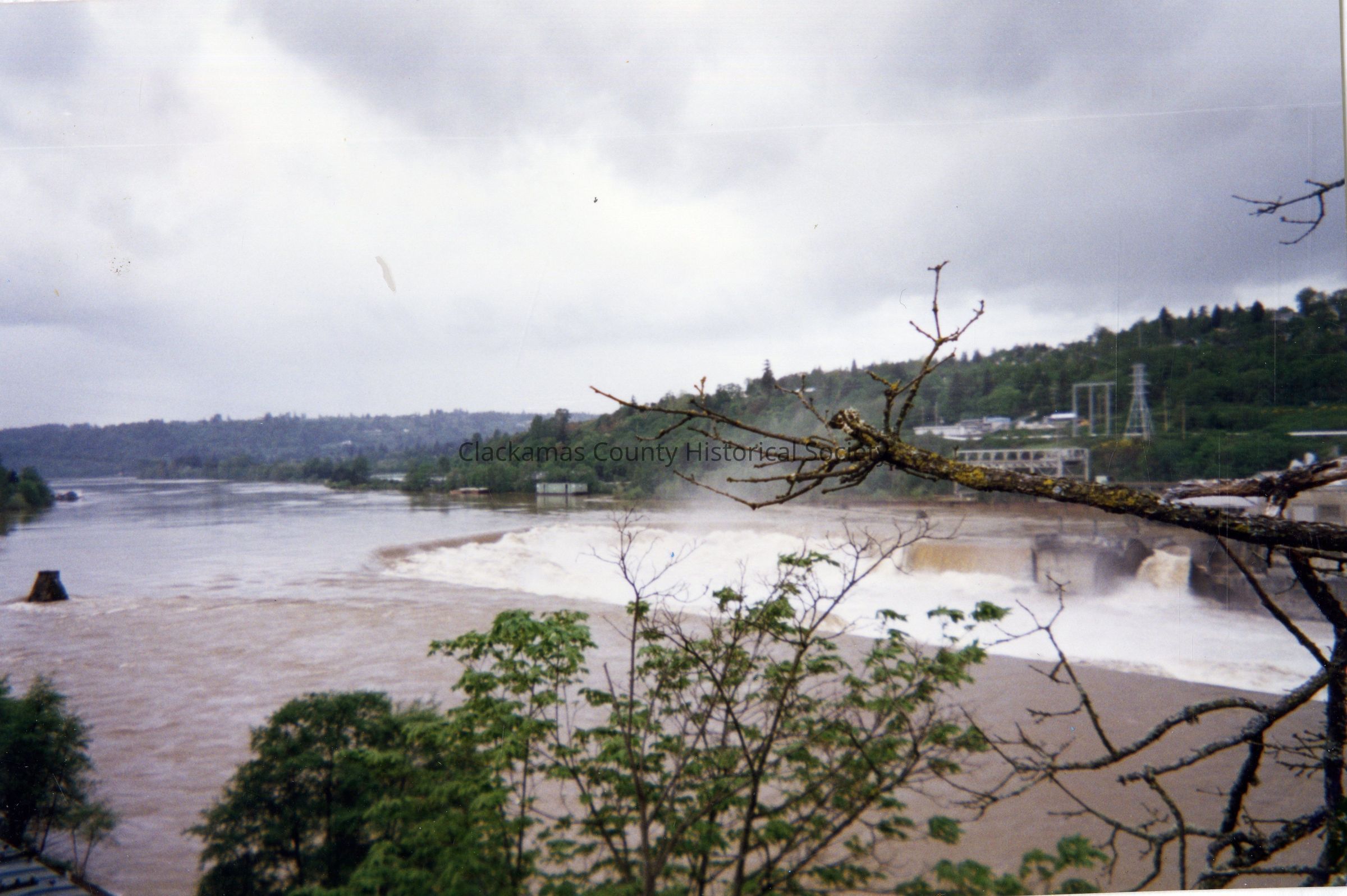 Willamette Falls from the Overlook on Highway 99E, 1990s.Made/Created