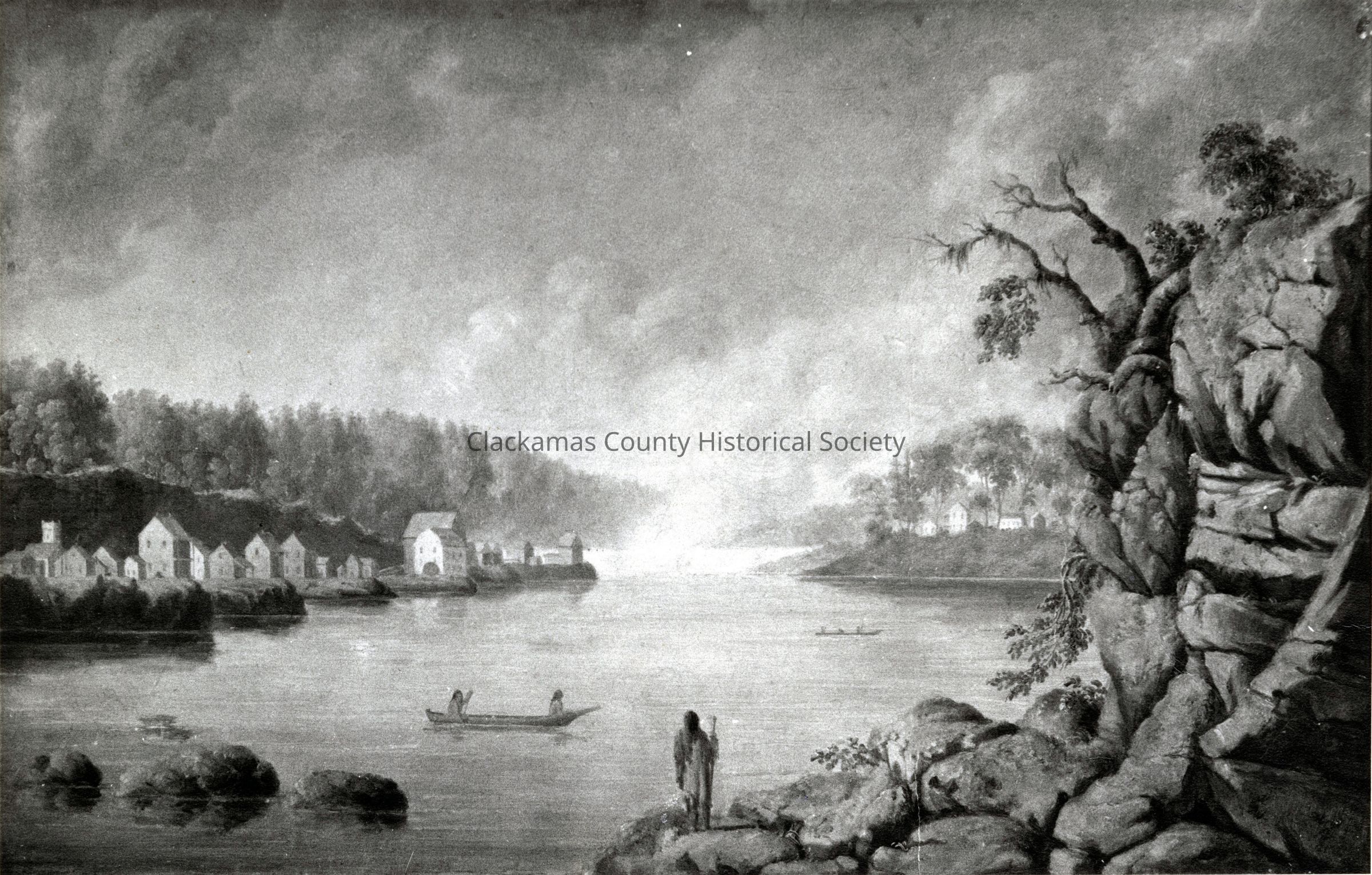 Oregon City and Willamette Falls Painting by Paul Kane. January 1847