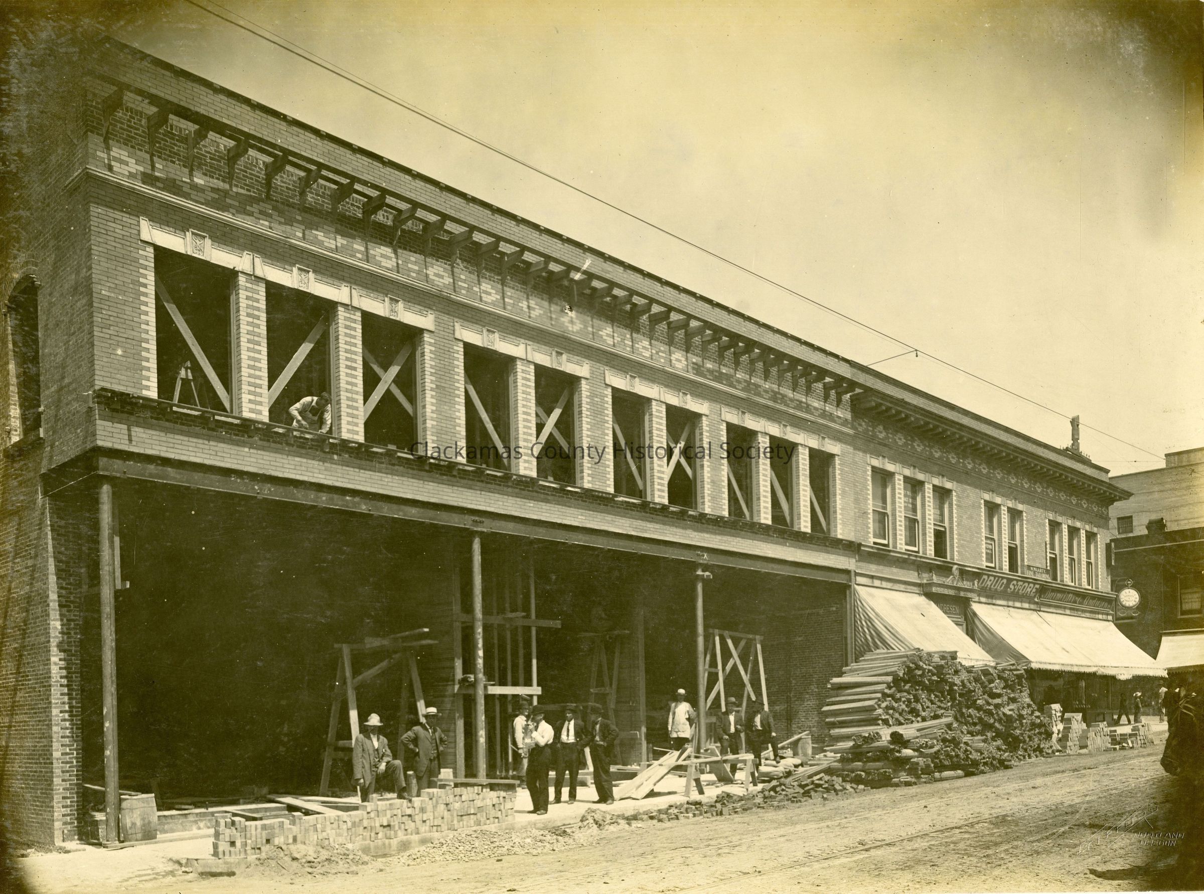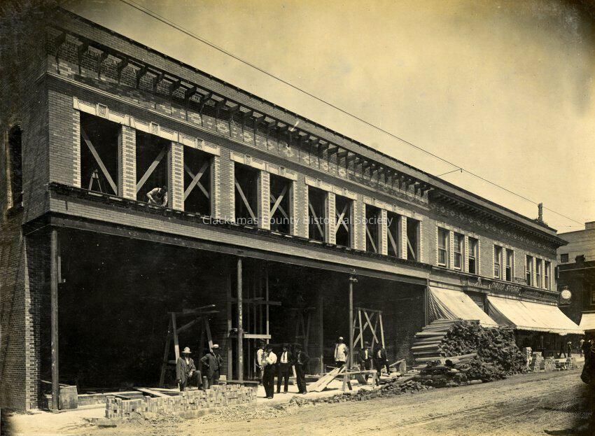 Beaver Building under construction. Between 6th and 7th on Main Street, Oregon City. People out front. Andresen Building next door.Made/Created