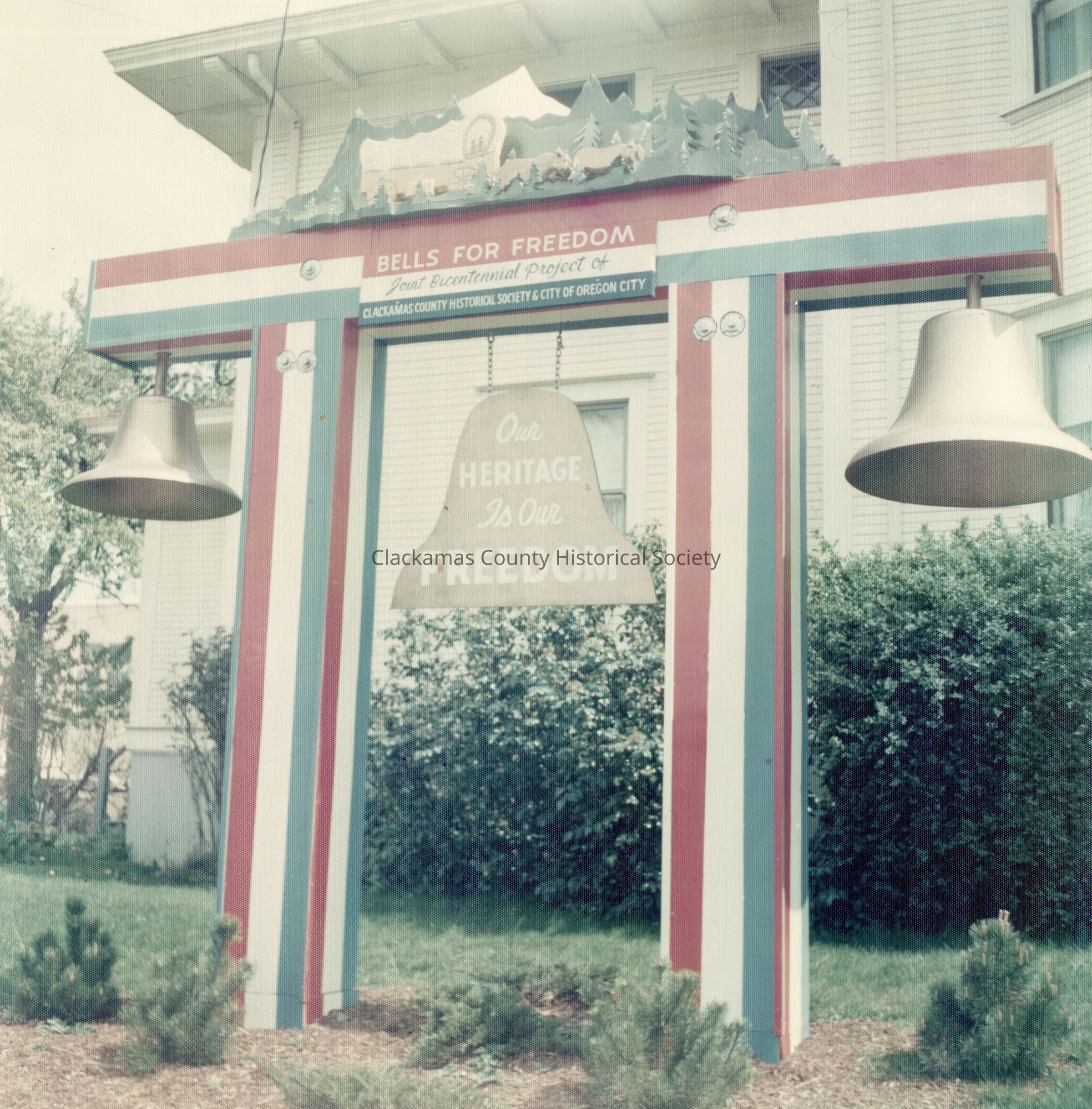 Bells for Freedom, March 1976. Designed by Harold Bernier for Oregon City Bicentennial Commission and Clackamas County Historical Society.Made/Created