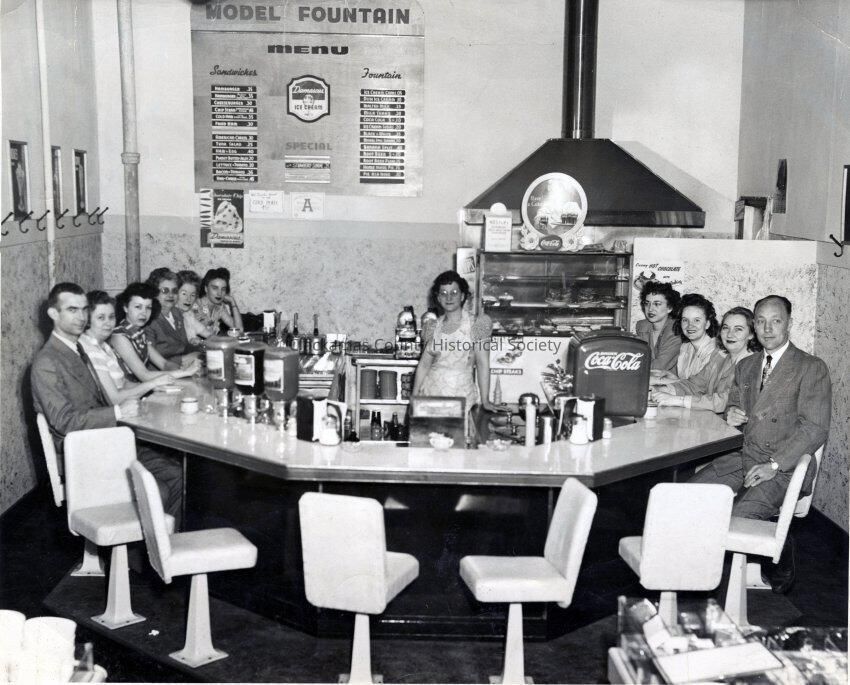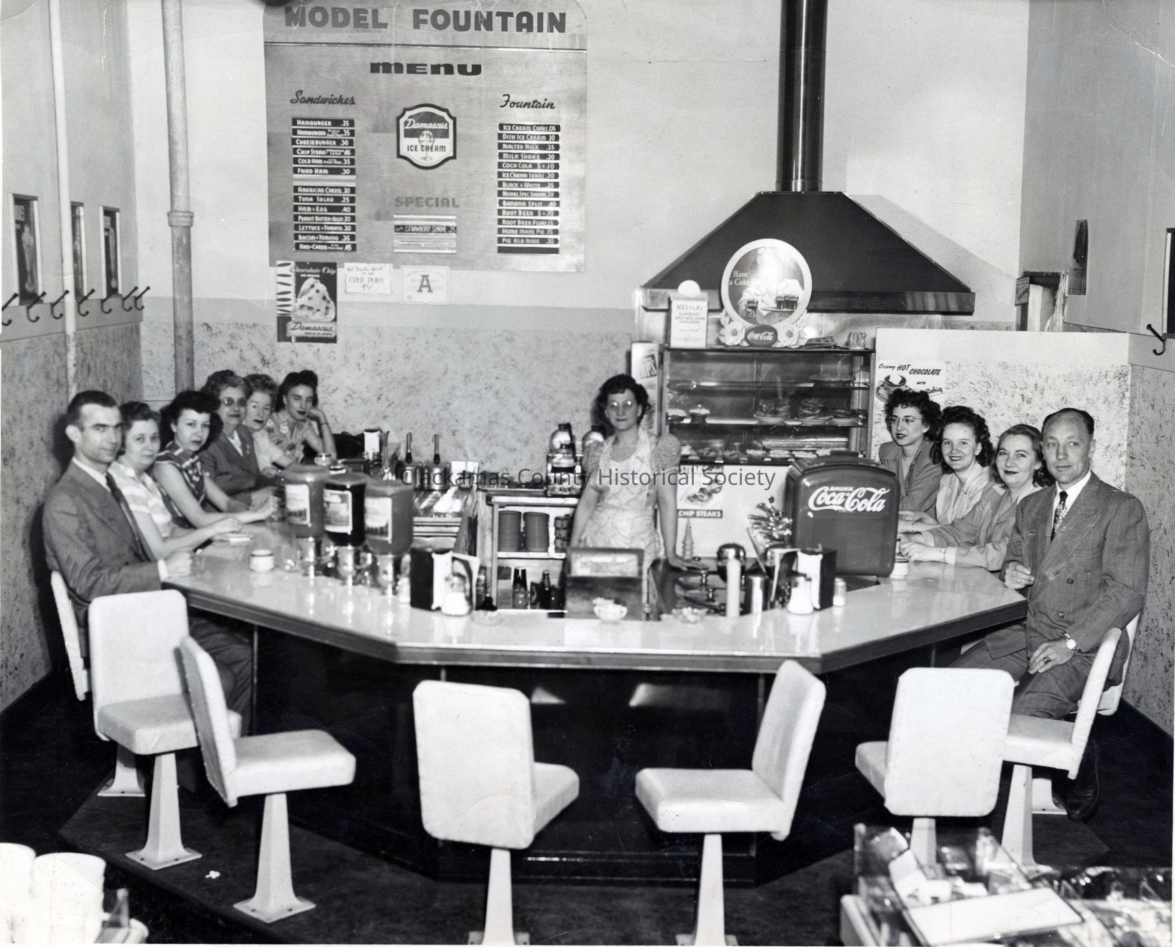 Benjamin Franklin Variety Store, Lunch Counter, 704 Main Street, Oregon City. Photo is signed on back by apparently some of the people in the photo.Made/Created