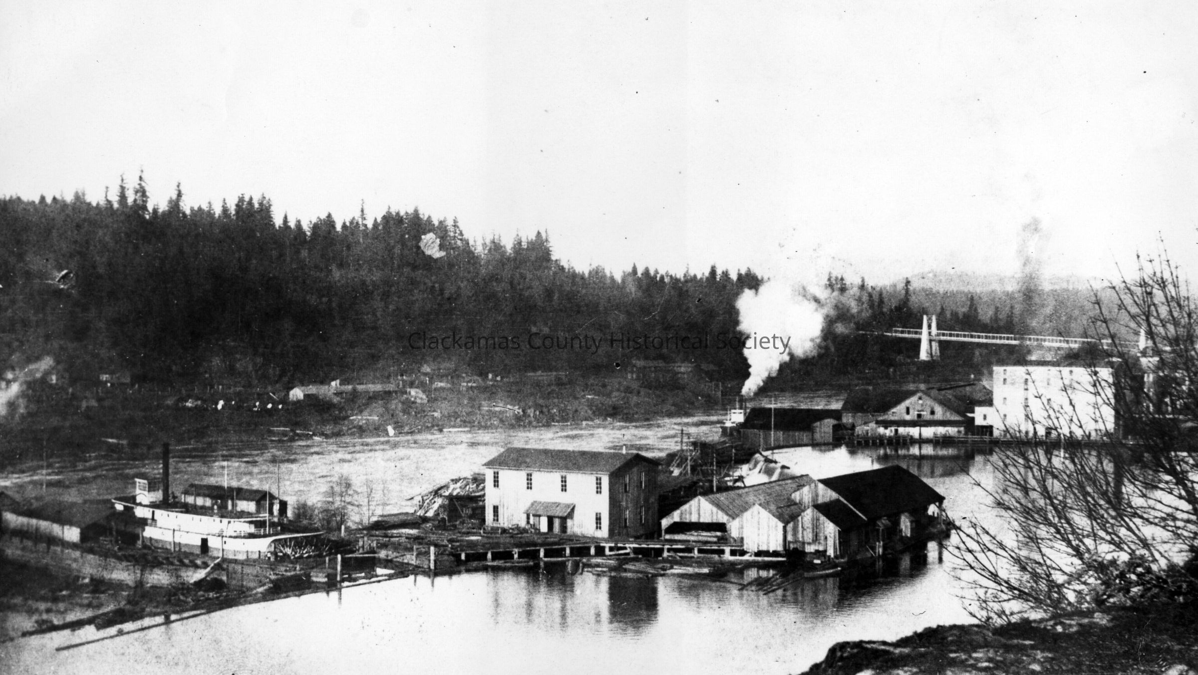 Oregon City Boat Basin, Station A, 1889. Arch bridge in background.Made/Created