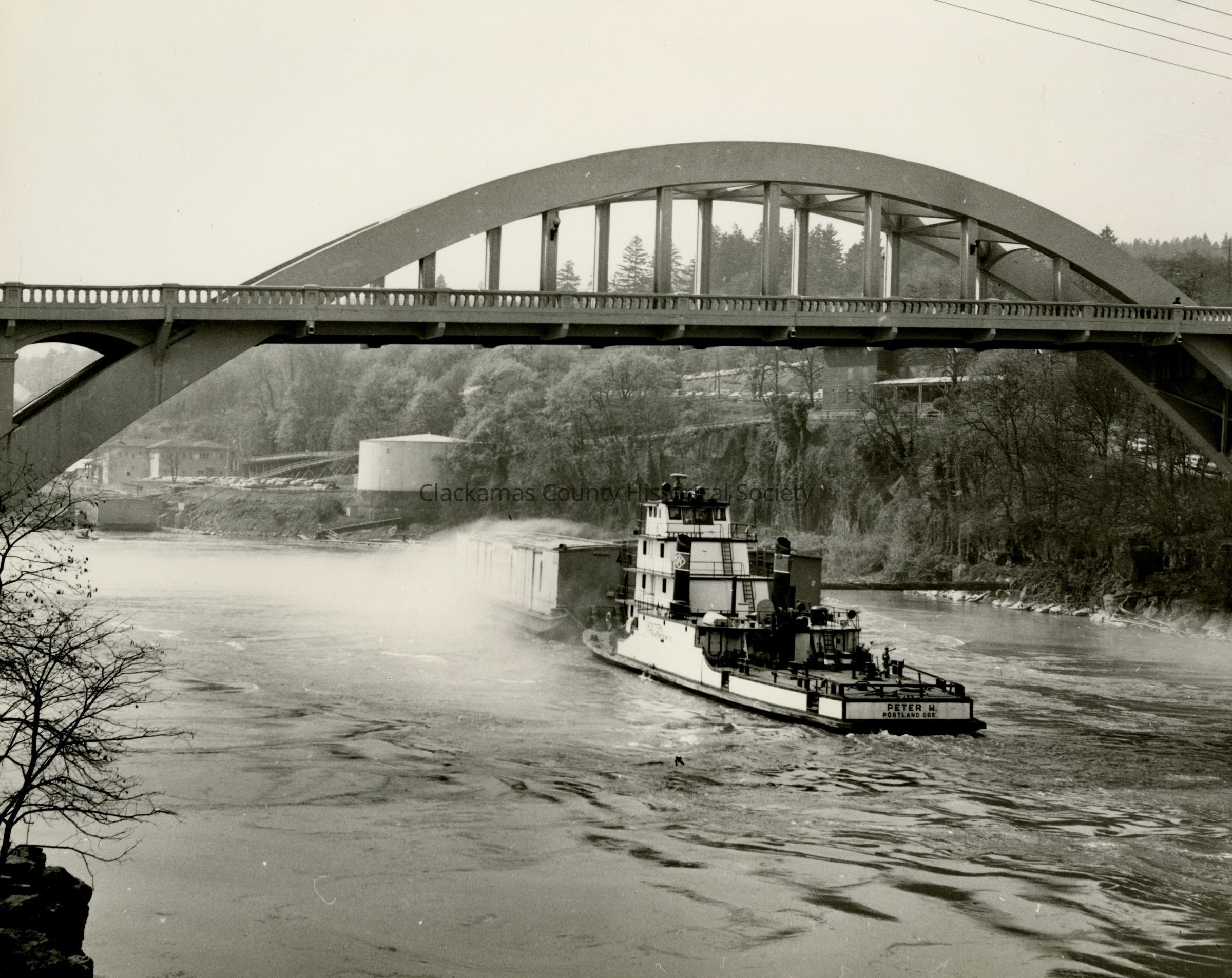 Oregon City Bridge with Tugboat "Peter M" Pushing Barge