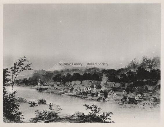 Painting of Oregon City by Sir Henry Warre (British Naval Captain) in 1846 Library of Congress has original With negative