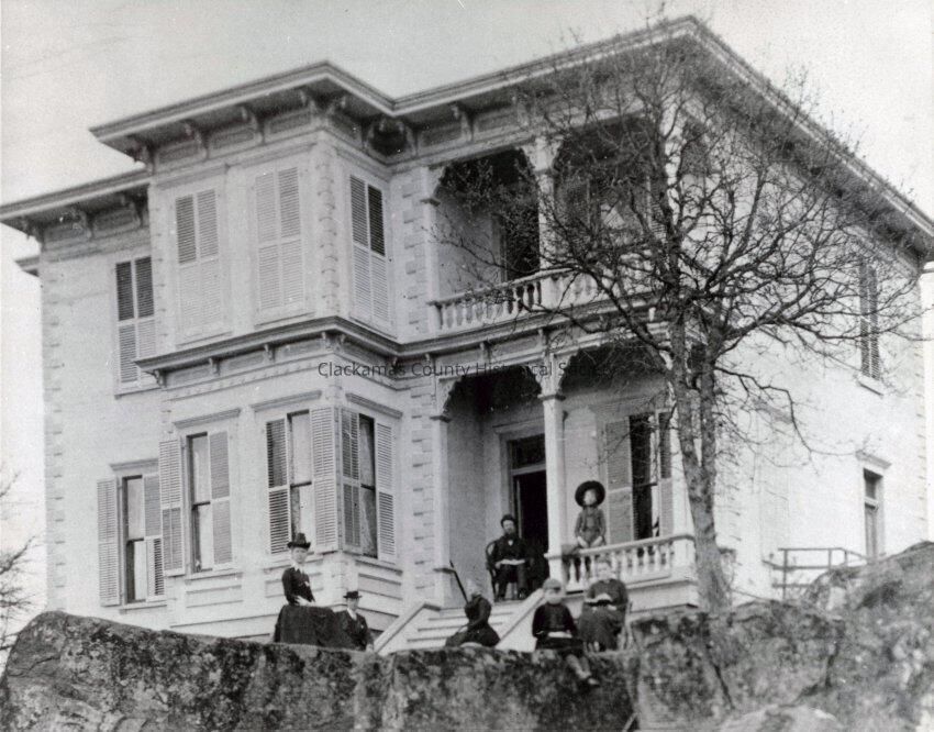 James Chase House and Family, Oregon City, 1890. Located between 6th and 7th Streets. Donated by Jim Howland, grandson of James Chase. This photo is a larger version of P-6163.Made/Created