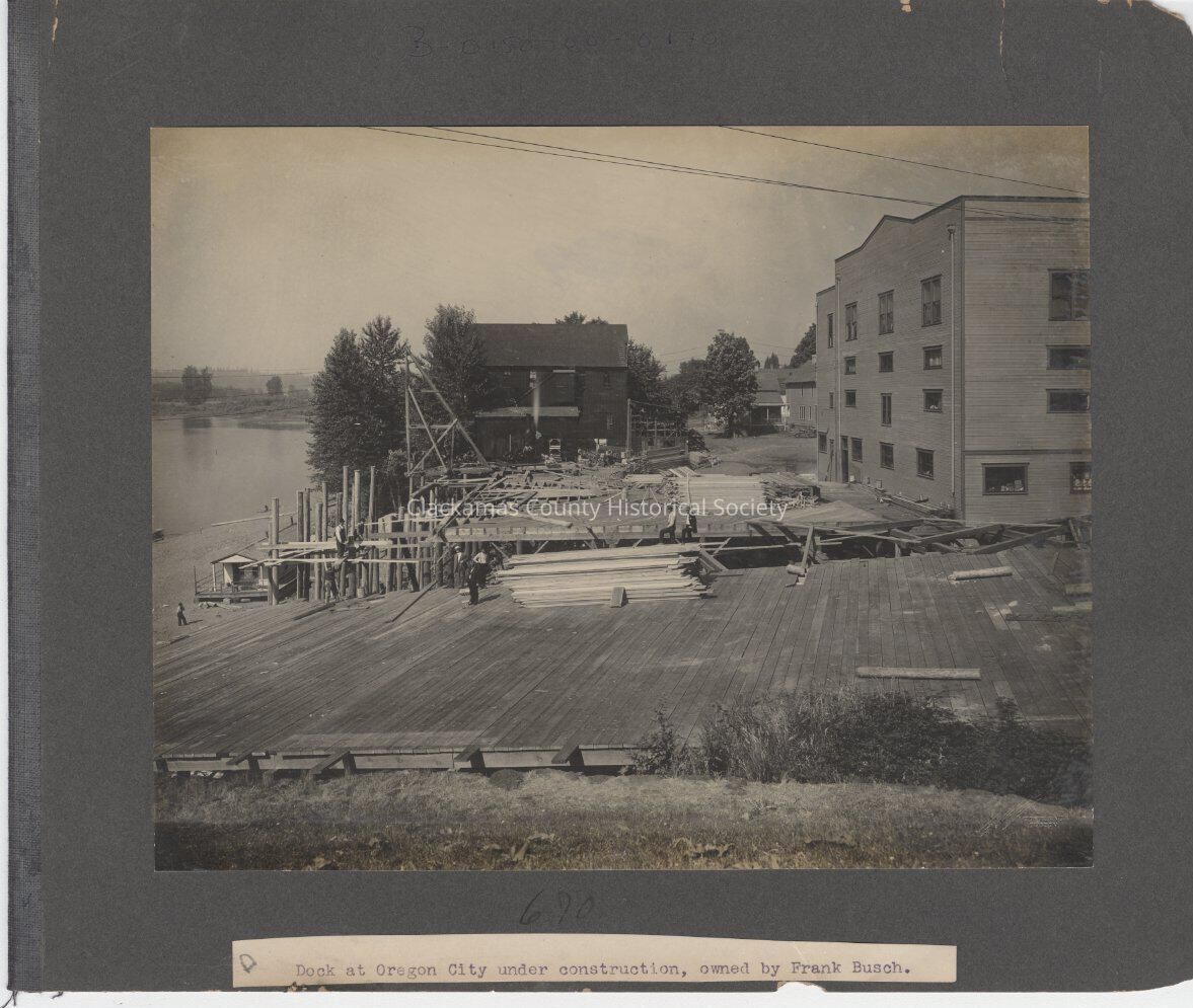 Dock at Oregon City under construction owned by Frank Busch out of album