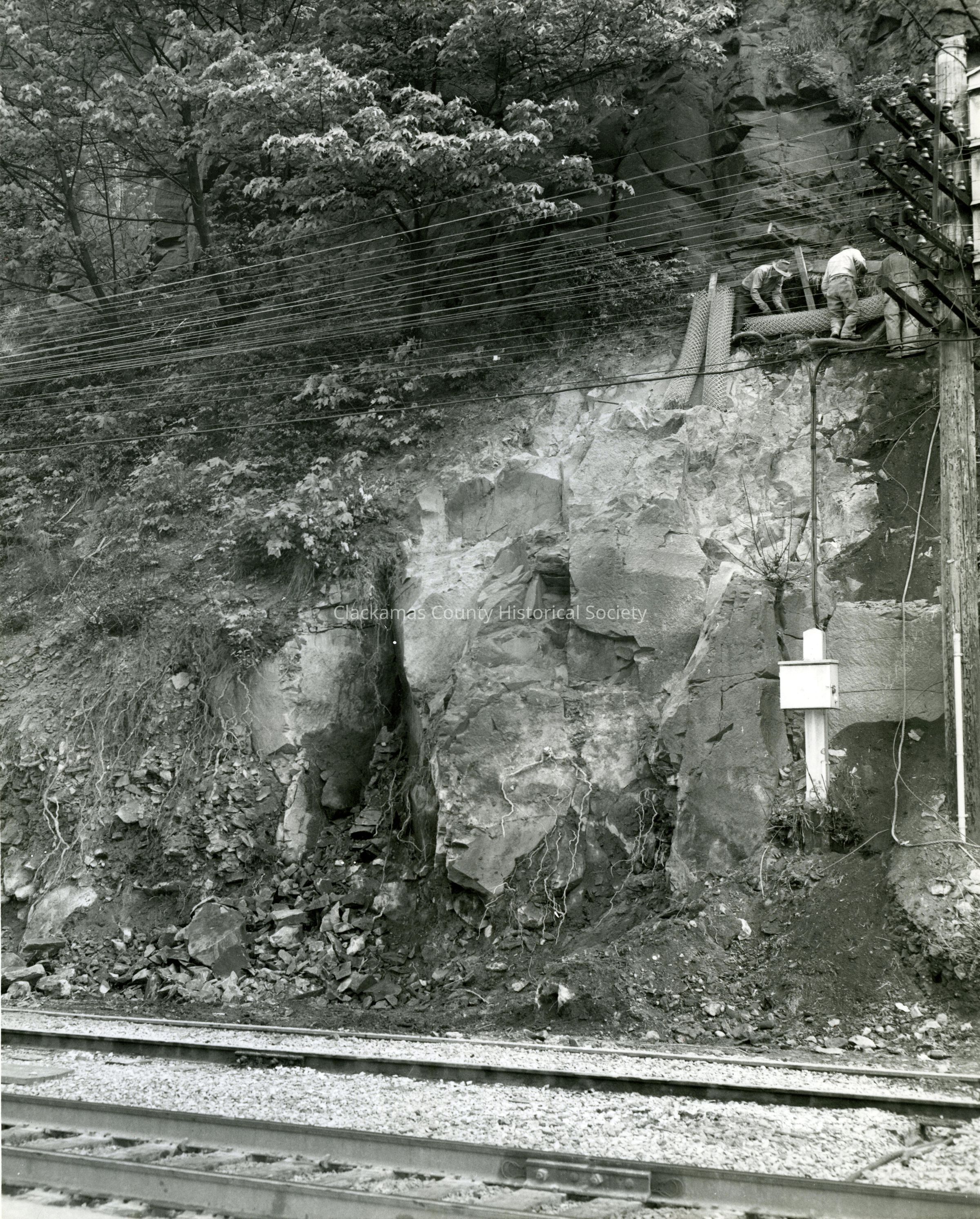 Oregon City Elevator May 12th, 1954. Preparation of construction/blasting for new elevator.