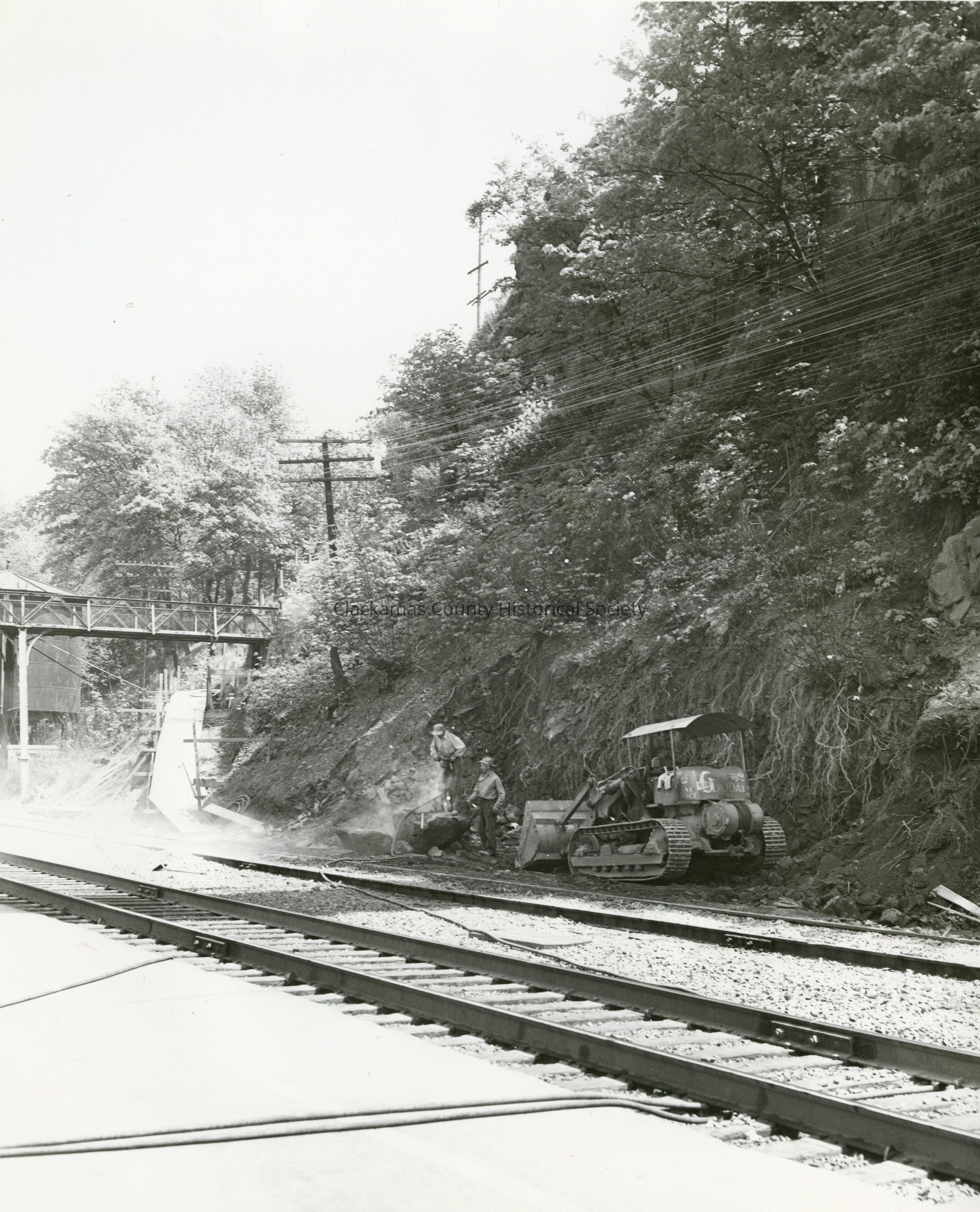 Oregon City elevator May 10th, 1954. Preparation of construction/blasting for new elevator.