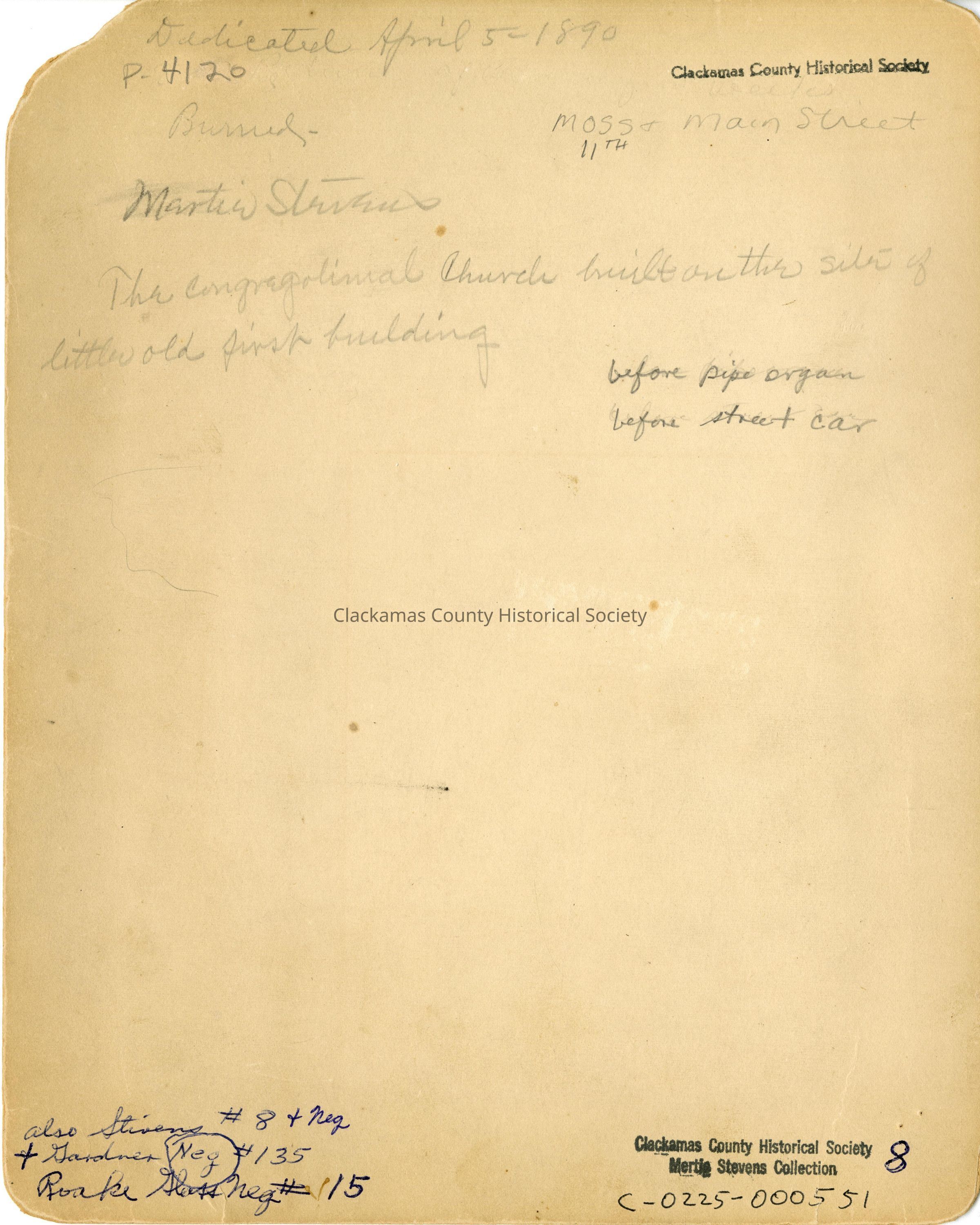 Oregon City First Congregational Church - 1890Entry/Object ID