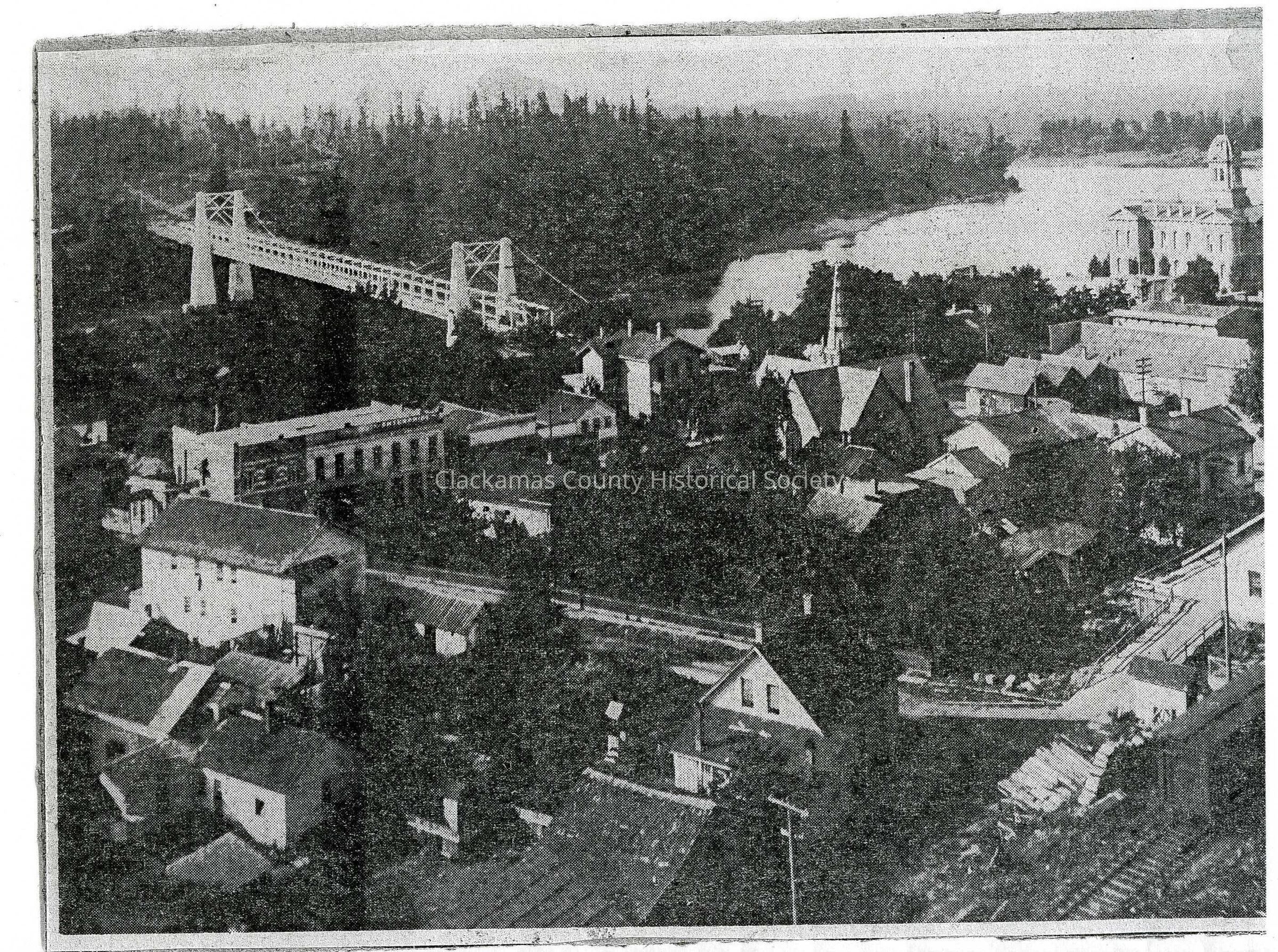 Scan of newspaper half-tone print off Oregon City from Bluff at 5th Street.
